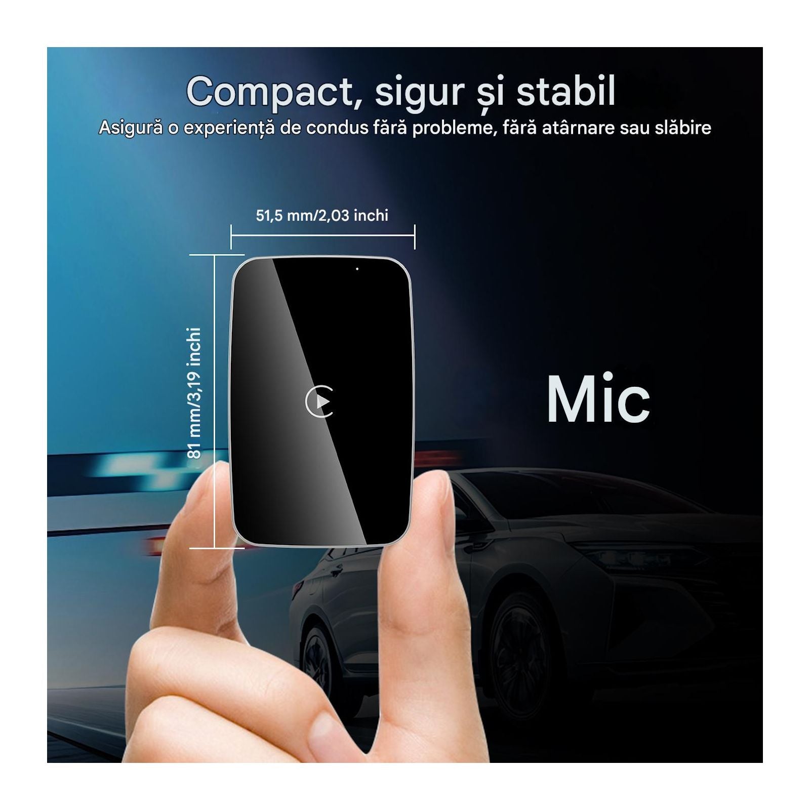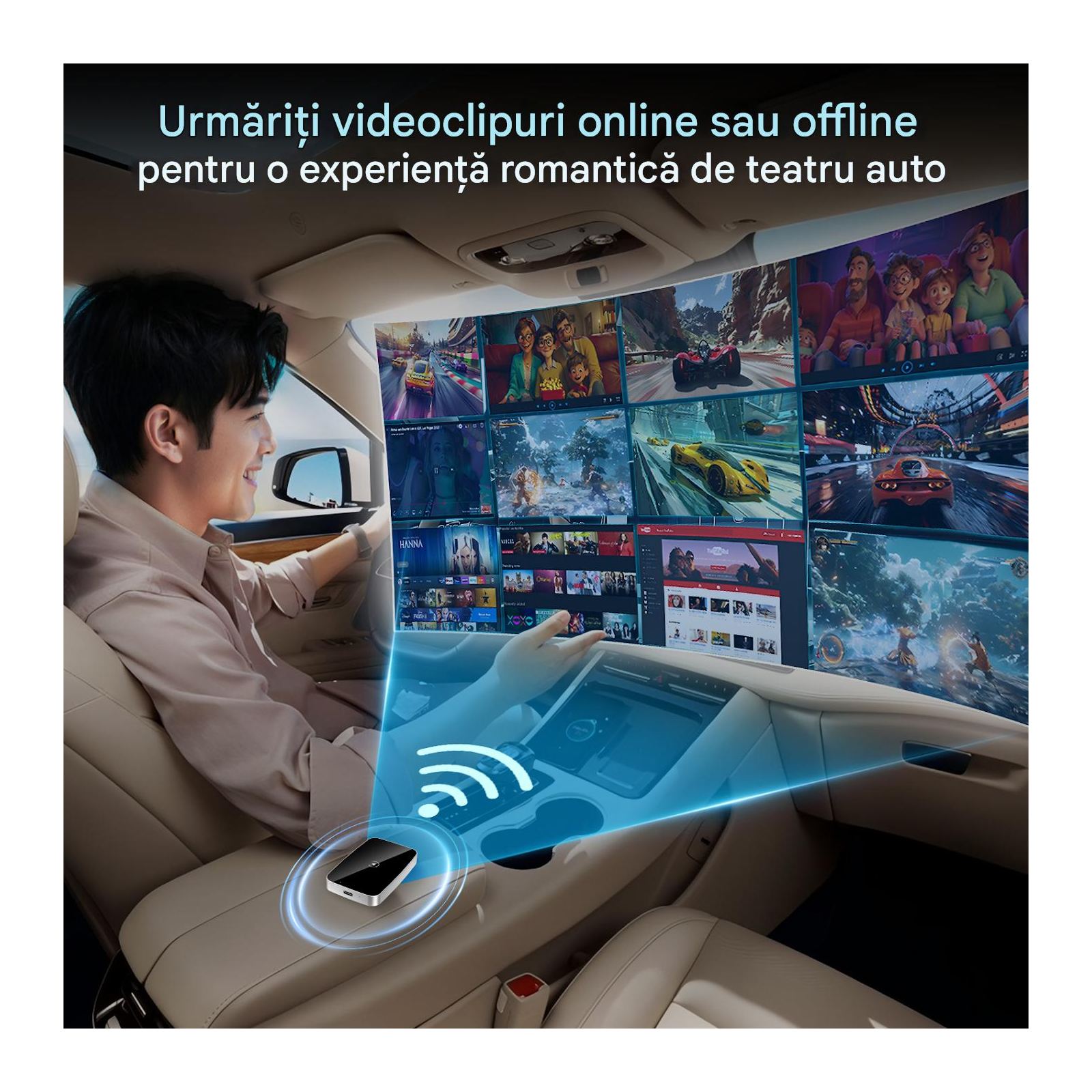 Adaptor Wireless CarPlay idealSTORE New BOX, Urmarire Videoclipuri, Netflix, Tik Tok, YouTube, Slot Card, compatibil Wireless CarPlay si Android, Conectare Automata, Conectare la Microfonul Masinii, Sincronizare Rapida