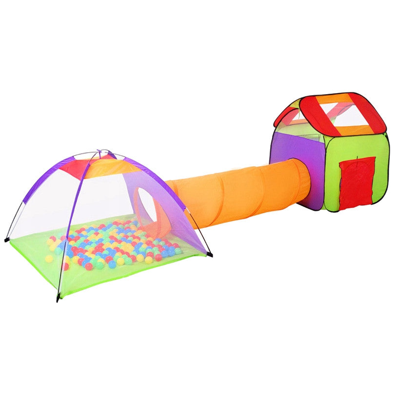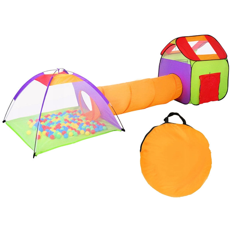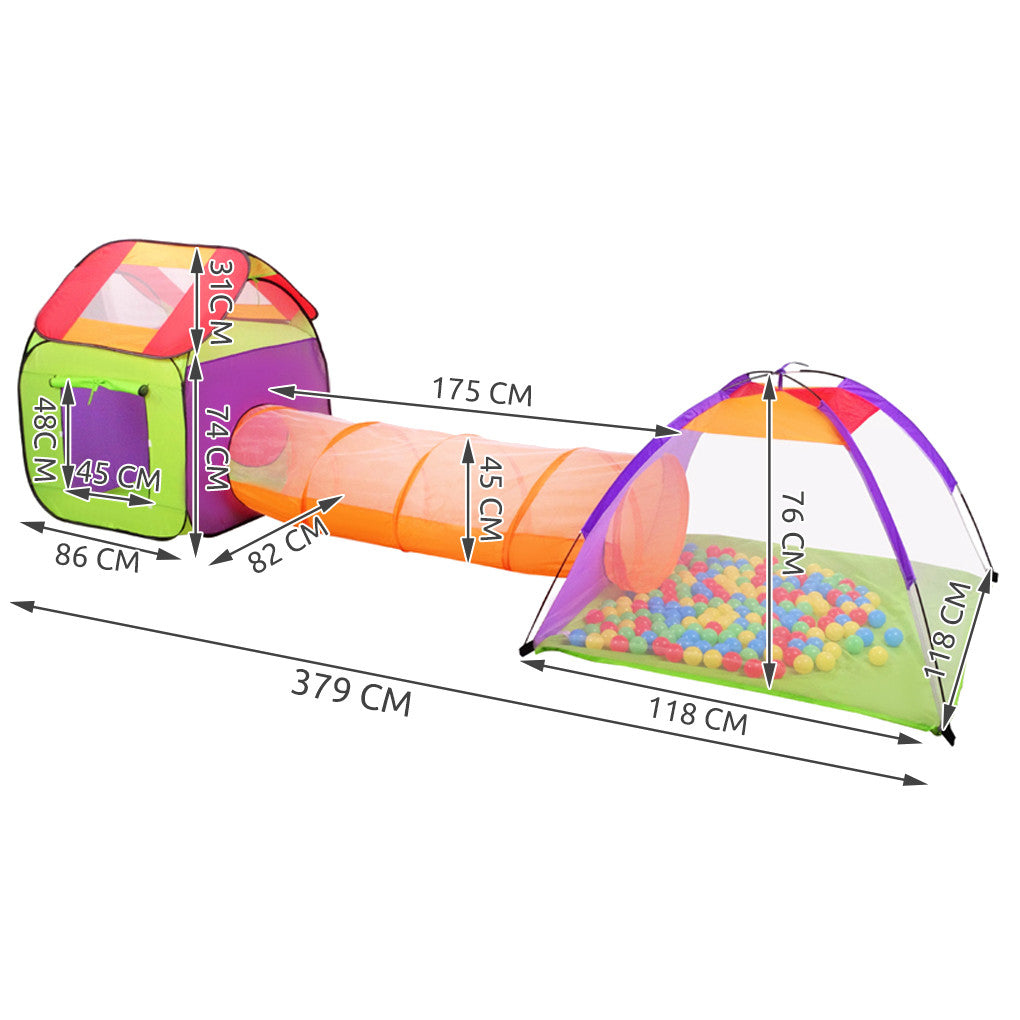 Ansamblu corturi 3 in 1 pentru copii - cort casuta, iglu si tunel, 200 bile
