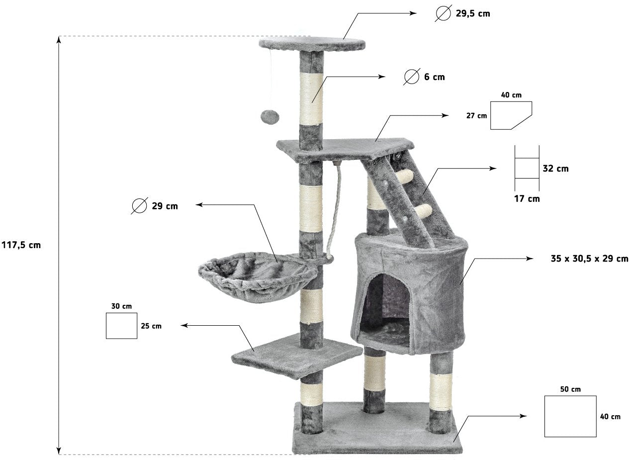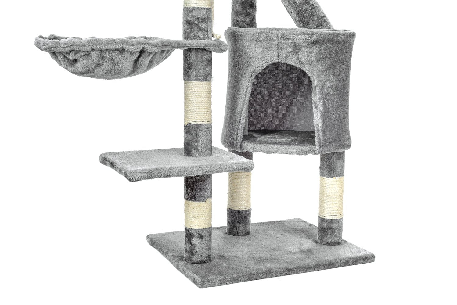 Ansamblul este acoperit cu un material durabil, moale la atingere, de plus, care ii permite pisicii sa se distreze sau sa petreaca ore intregi relaxandu-se.