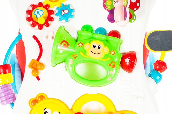 Antepremergator 3 in 1 IdealStore Primii Pasi Monkey, cu sunete si melodii, jucarii detasabile trompeta,maimuta, ajuta la coordonarea ochi-mana-sunet, diversitate de accesorii simbolice care asigura distractia celor mici, Diverse activitati in limba engleza