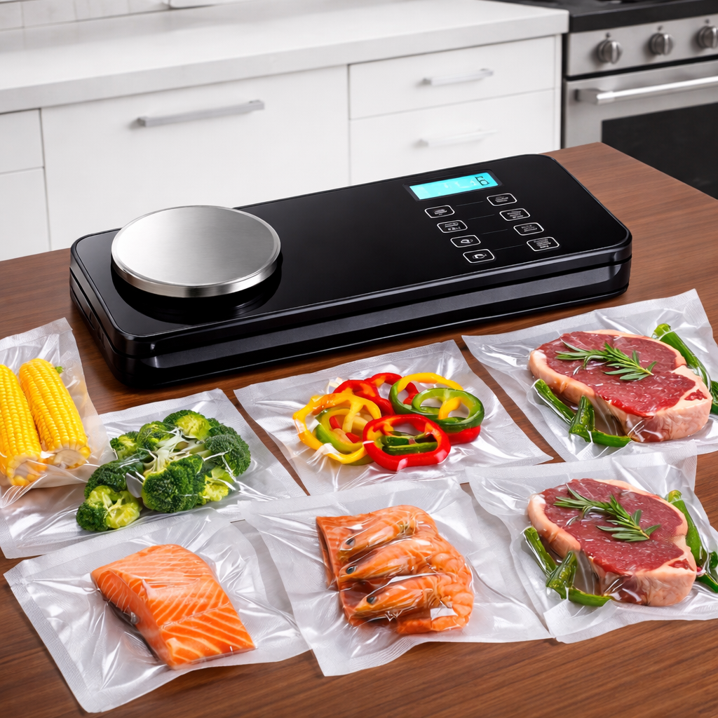 Aparatul de vidat cu cantar idealSTORE este un dispozitiv 2 in 1 care imbina un aparat de vidat puternic cu un cantar electronic precis, pentru a avea mereu control asupra portiilor si al prospetimii alimentelor.