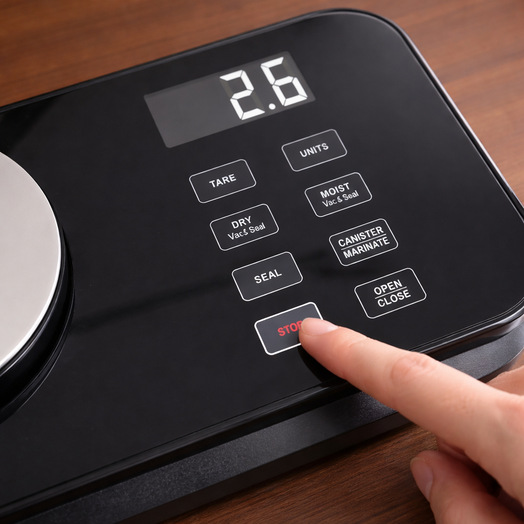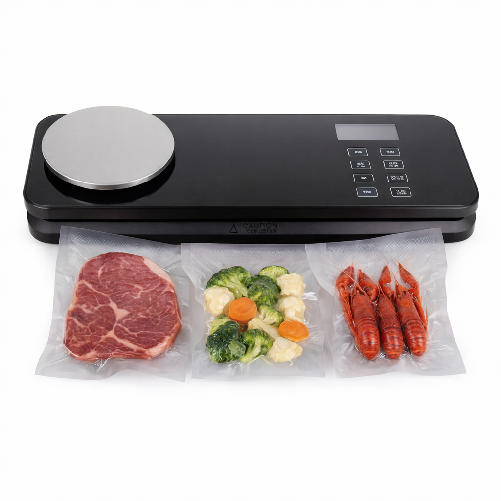 2 in 1: aparat de vidat + cantar digital – sigilezi si cantaresti in acelasi loc, economisind spatiu, timp si reduci risipa alimentara.