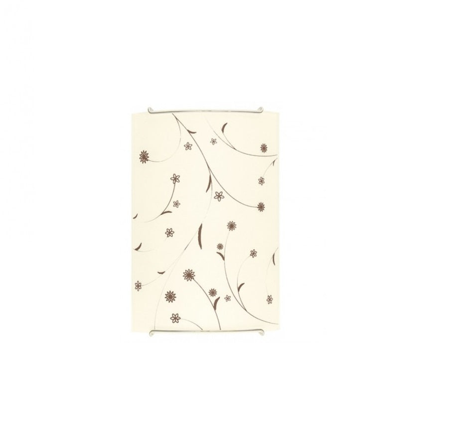 Aplica HANNA COLLECTION este un corp de iluminat cu structura din metal cu finisaj crom si dispersor din sticla crem cu model floral maro.