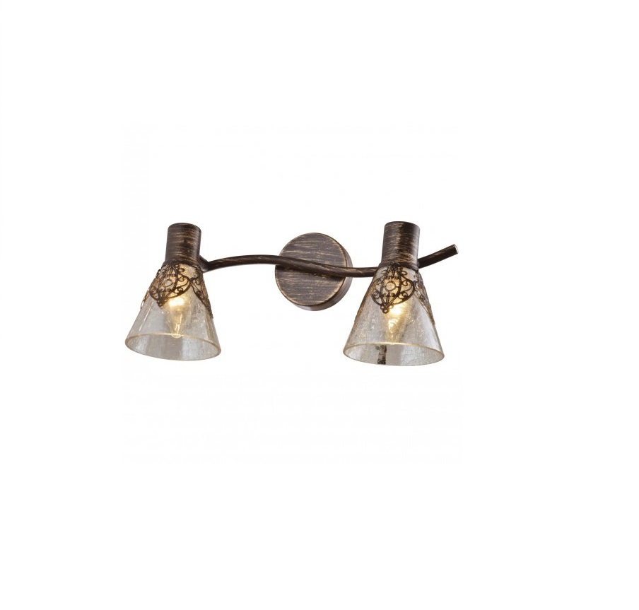 Aplica HOLLY COLLECTION este un corp de iluminat ce poate fi montat atat pe perete cat si pe tavan, cu structura din metal maro antic si doua abajururi din sticla crem transparent.