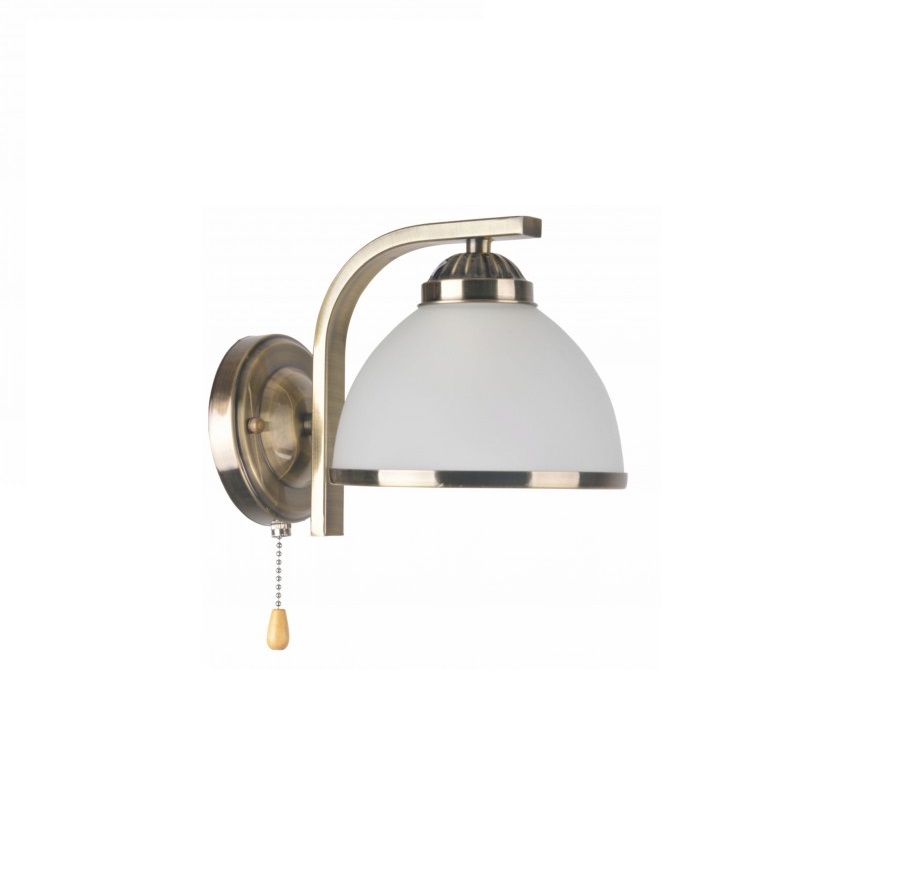 Aplica Sella este un corp de iluminat cu structura metalica de culoare bronz si abajur din sticla alba decorat cu inel din metal de culoare bronz. Aceasta este construita pe dimensiunile 150 x 230 x 220 mm (latime x inaltime x distanta de la perete) si are un grad de protectie, de IP20, ce recomanda utilizarea in interiorul locuintei.