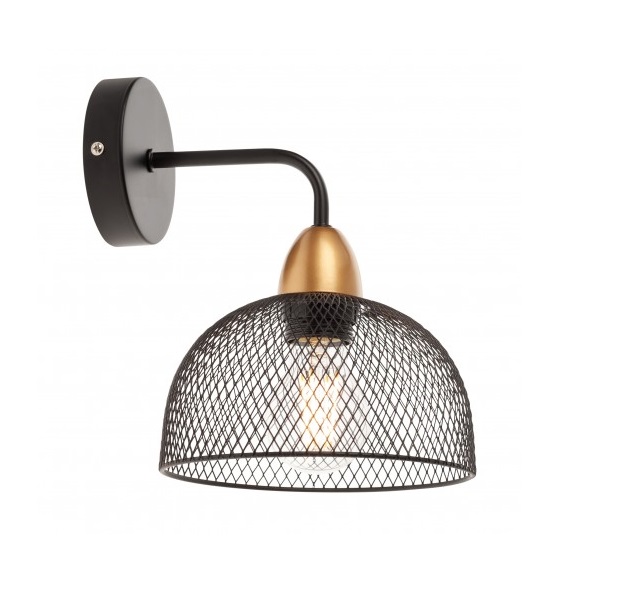 Aplica TAMISSA este un corp de iluminat pentru interior, cu structura din metal vopsit negru mat, detaliu finisat aur mat si dispersor din retea metalica vopsit negru mat. Aceasta este construita pe dimensiunile 180 x 246 x 219 mm (latime x inaltime x distanta de la perete) si are un grad de protectie, de IP20, ce recomanda utilizarea in interiorul locuintei.