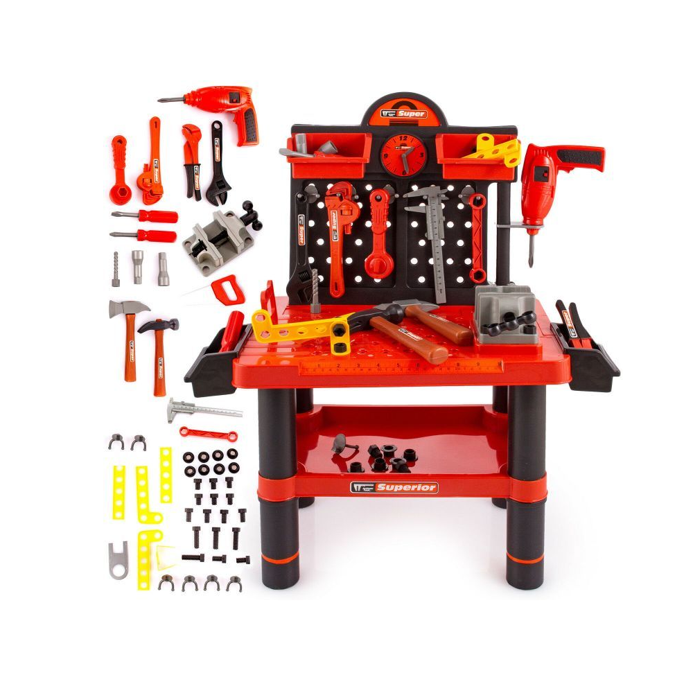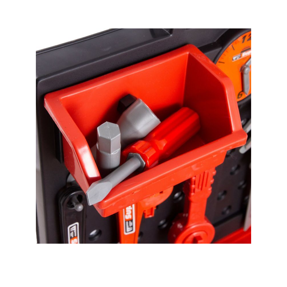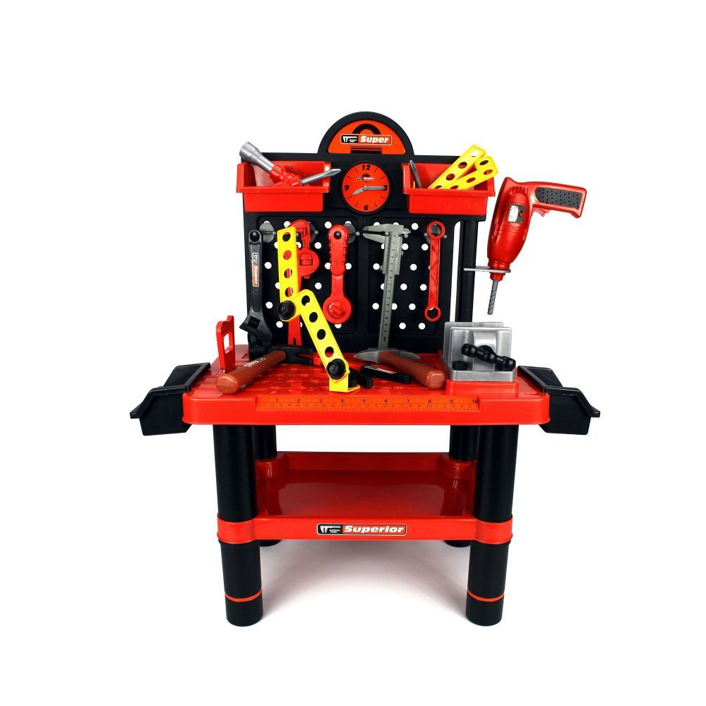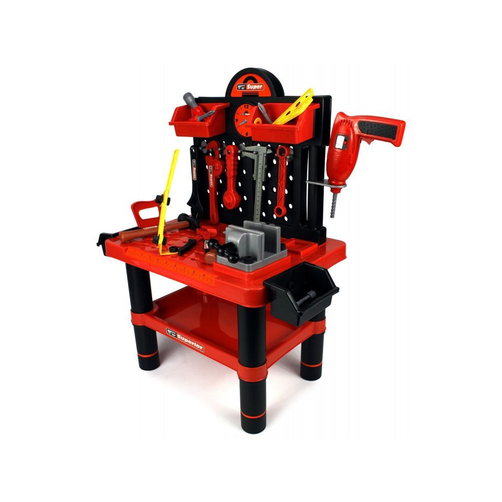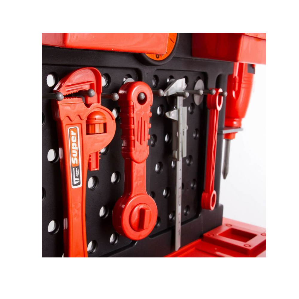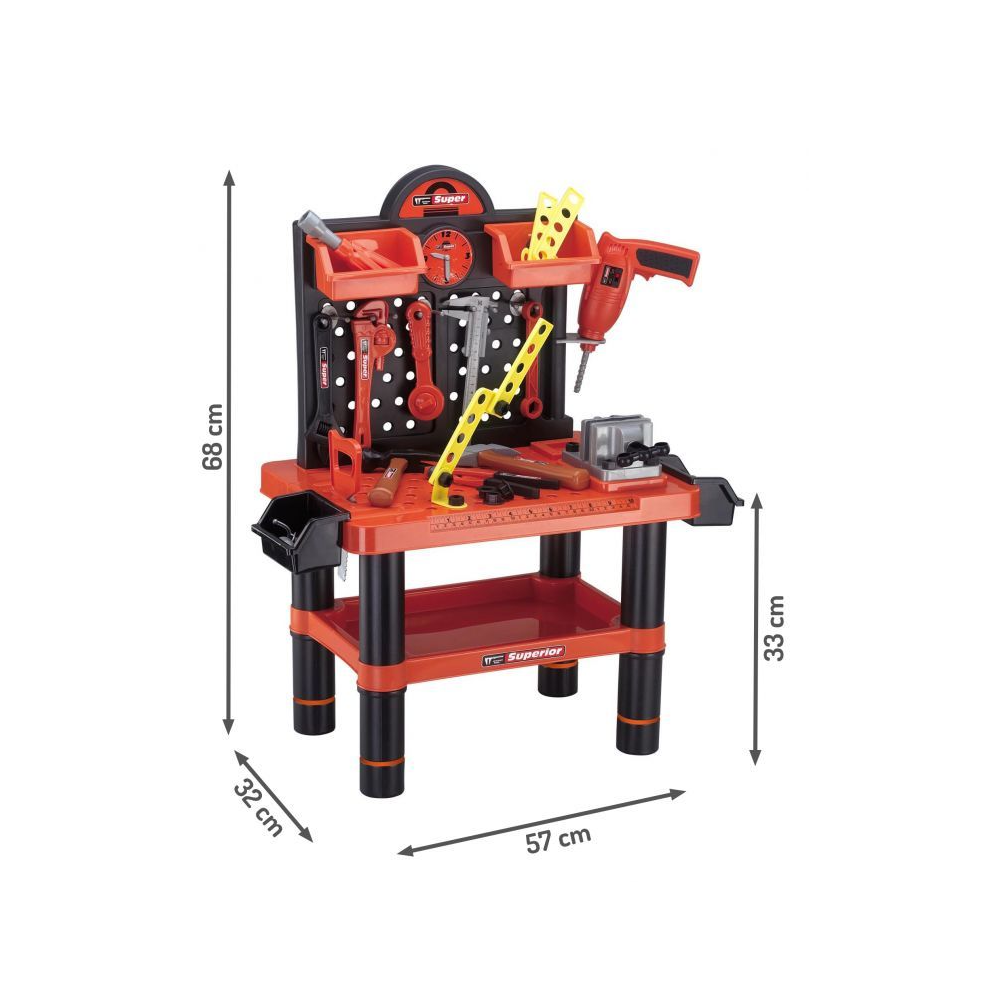 Atelierul va deveni cu siguranta un loc de ore de distractie. Toate uneltele sunt usoare, sigure si confortabile pentru mainile mici. Instrumentele imita perfect omologii lor reali.