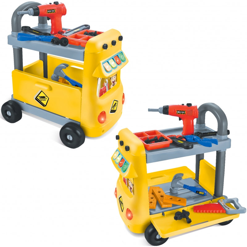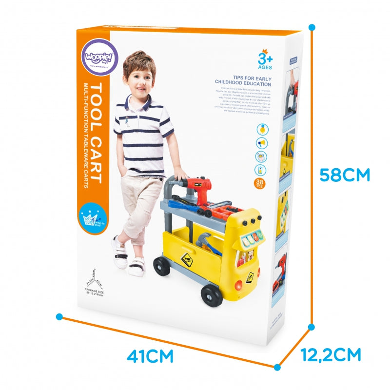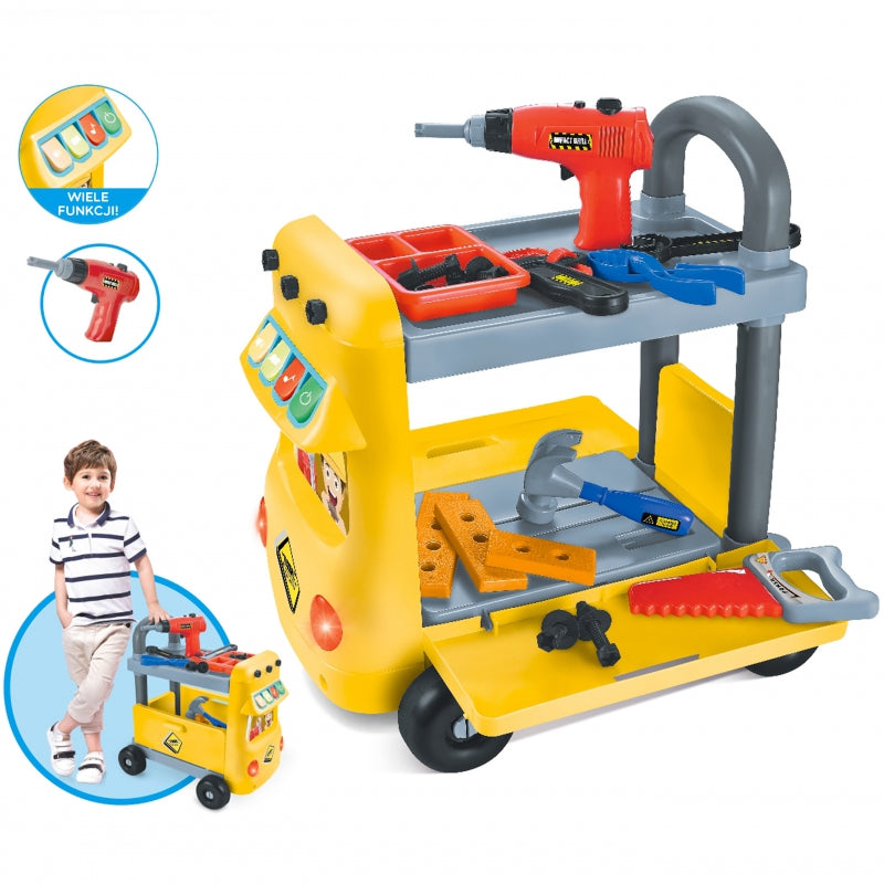 Atelierul de jucarii WOOPIE 2in1 pentru copii este o oportunitate pentru un copil de a petrece timpul intr-un mod interesant si de a-si dezvolta abilitatile manuale, dar si de a-si antrena imaginatia , ceea ce ii va permite sa faca fata mai bine provocarilor pe care le reprezinta indatoririle zilnice. Datorita atelierului, copilul va invata despre instrumentele si principiile pe baza carora functioneaza. Este o idee de cadou perfecta nu doar pentru un tanar pasionat de bricolaj, ci si pentru acei copii care nu au avut inca ocazia sa descopere cat de multa bucurie si satisfactie le ofera suruburile, piulitele, precum si cheile si alte echipamente folosite pentru reparatii. si renovari. Atelierul include multe unelte si accesorii. Un mic mecanic va putea sa insurubeze, sa plieze, sa taie cu ferastraul, sa dea gauri. El va invata cu usurinta principiile de lucru cu diferite tipuri de materiale si componente si, de asemenea, va deveni constient de necesitatea de a fi atent atunci cand foloseste unelte mecanice . Setul de atelier include si un burghiu de mana mobil, o cheie reglabila si multe alte surprize. In plus, datorita faptului ca setul are multe locuri pentru depozitarea uneltelor, il va invata pe copil sa curete si sa faca ordine dupa joaca.