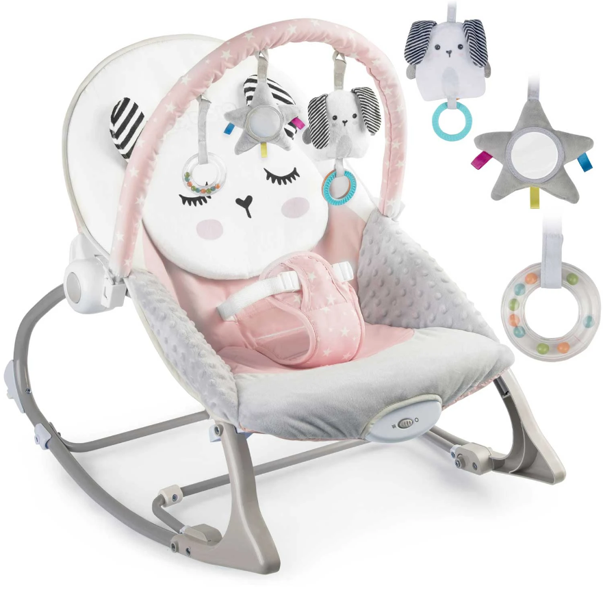 Balansoar 3in1 cu Vibratii si Melodii idealStore LuxuryCollections, Centura de Siguranta cu Prindere in 5 Puncte, Material Confortabil, Husa Detasabila, Greutate Maxima 9Kg, Roz