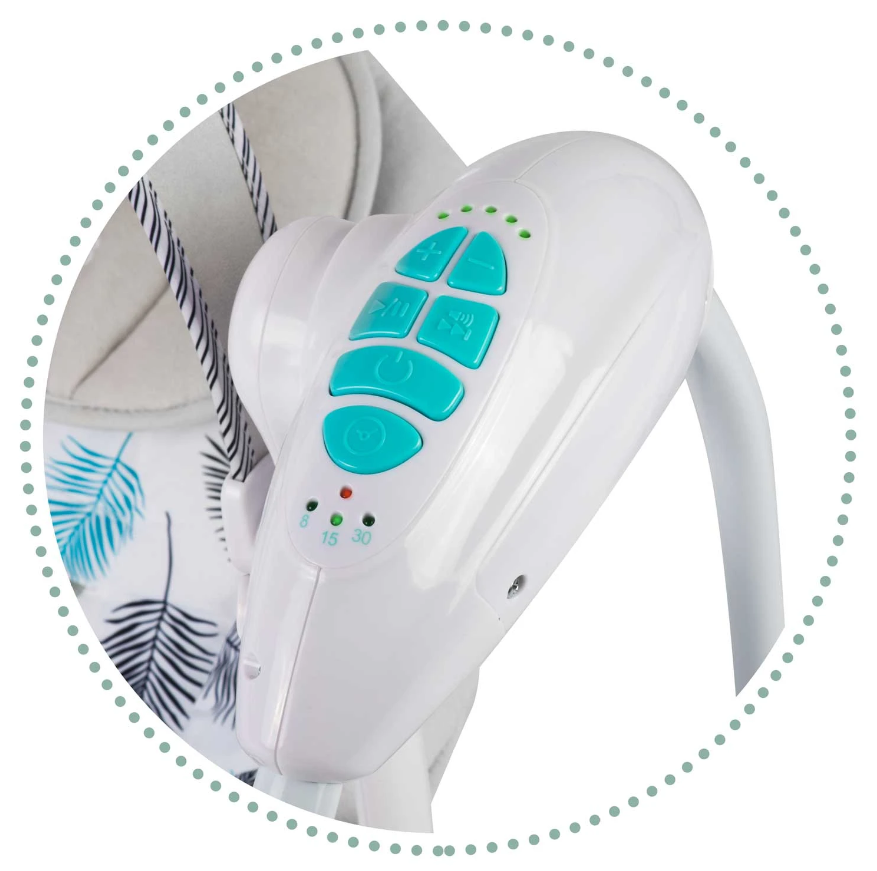Balansoar Multifunctional cu Melodii idealStore LuxuryCollections, 5 Viteze de Balansare, 10 Cantece, Temporizator, Centuri de Siguranta, Spatar Reglabil, Greutate Maxima 9 Kg, Gri