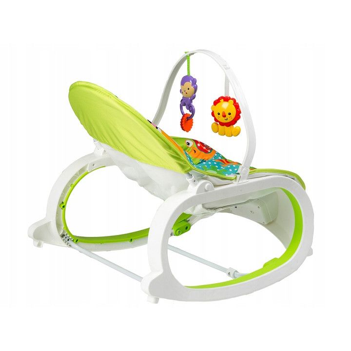 Balansoar si Scaun 3 in 1 cu Vibratii Relaxante, 'Happy Jungle', 8 Melodii, Bara de Activitati cu Jucarii, Husa detasabila si lavabila, Centuri de Siguranta, 0-18 kg