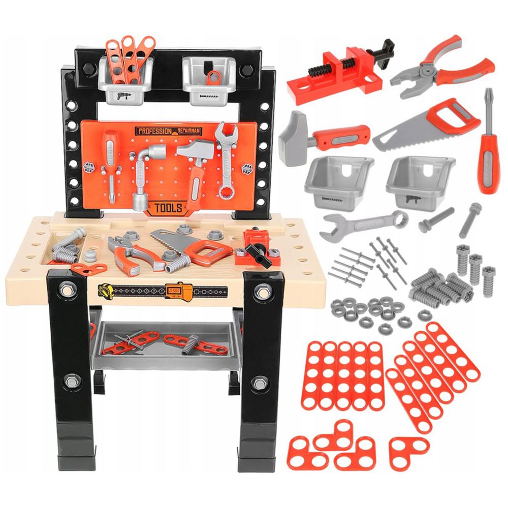 Banc de Lucru Jucarie pentru Copii cu Scule si Accesorii din Plastic, 65 de Piese pentru Atelier