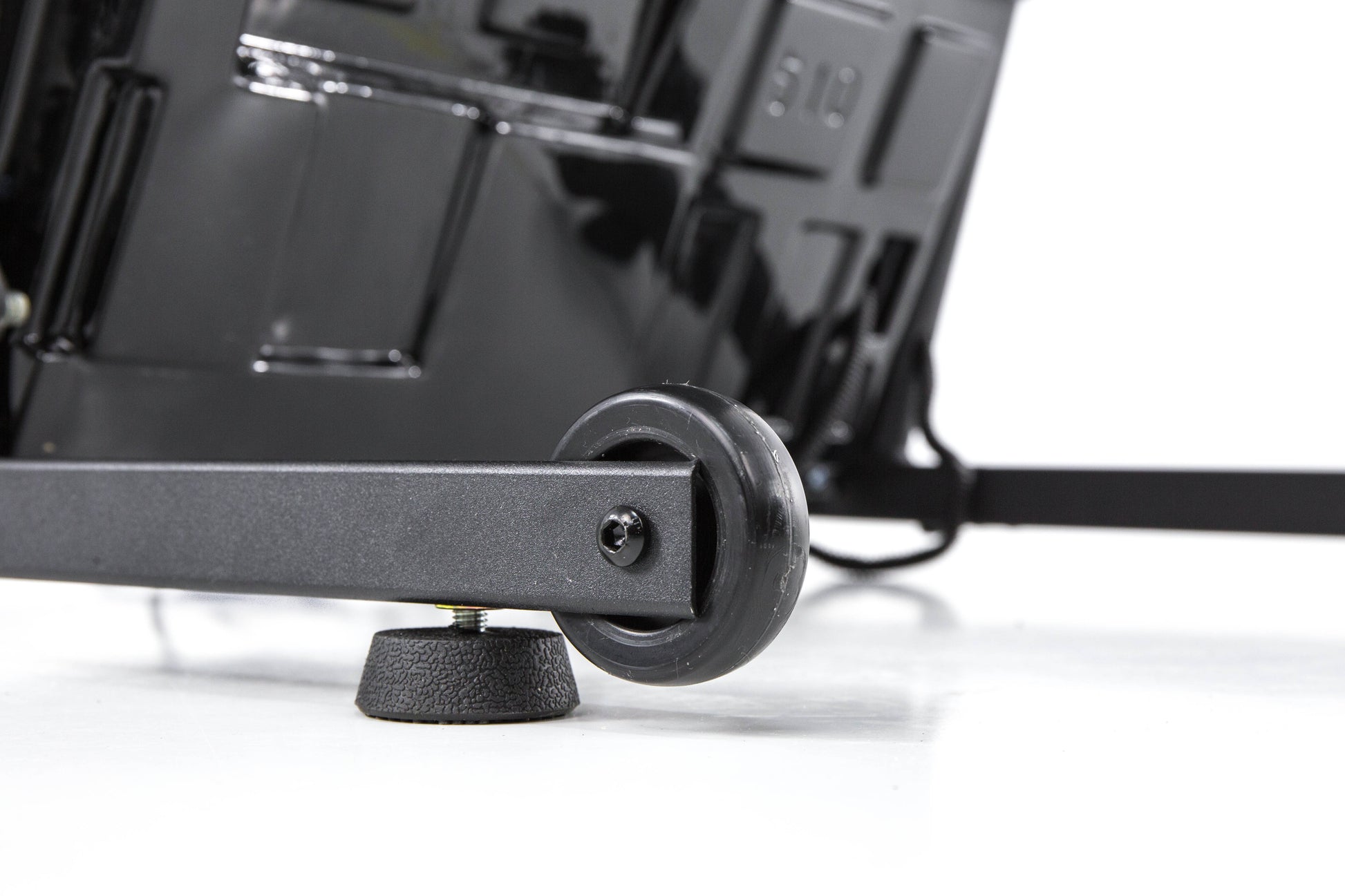 Banda de alergare a fost modernizata cu un sistem pliabil cu role de transport pentru a facilita mutarea dupa antrenament.