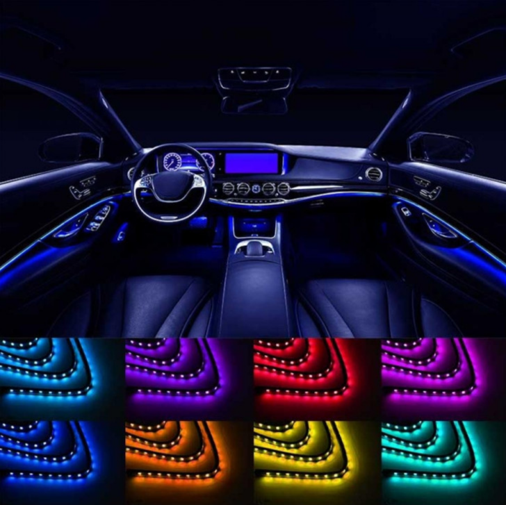 Banda LED Lumini Ambientale idealSTORE Auto 12V, 9W Telecomanda, Control Muzical 4 x 22 cm, RGB