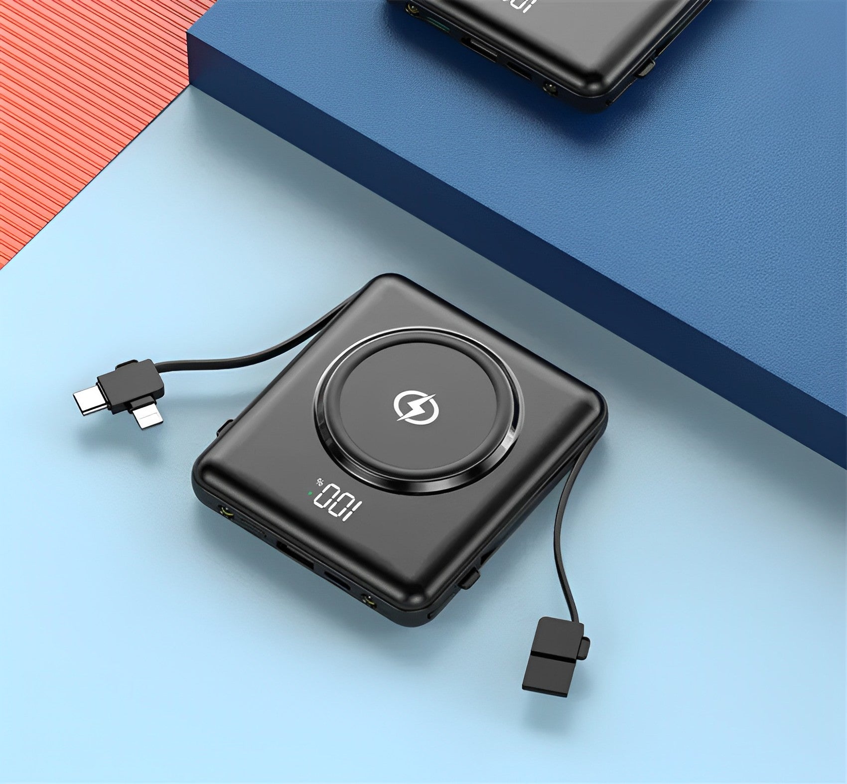 Baterie Externa Mini Battery IdealStore 10000 maH, 4 iesiri USB, USB tip C, USB tip micro, Incarcare fara fir, Tensiune Iesire 5V-2.1A, Incarcare rapida, BLACK