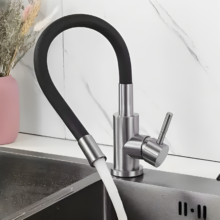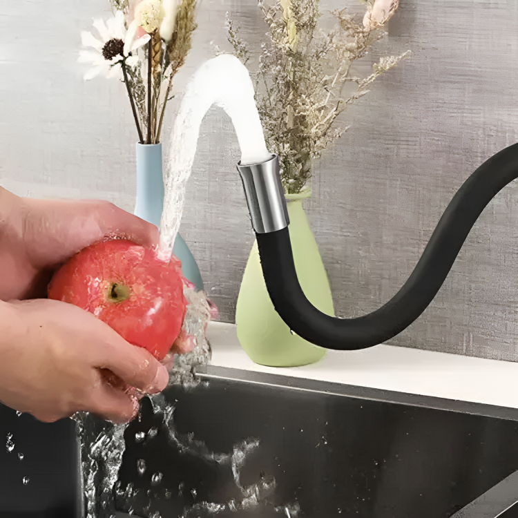 Baterie Rotativa Flexibila 360° idealSTORE, Material Silicon, Otel inoxidabil, Inaltime Reglabila, Aerotor Desurubat, Rezistent la Decolorare si Deteriorare, Previne Depuneri de Calcar, Economiseste 80% din Apa