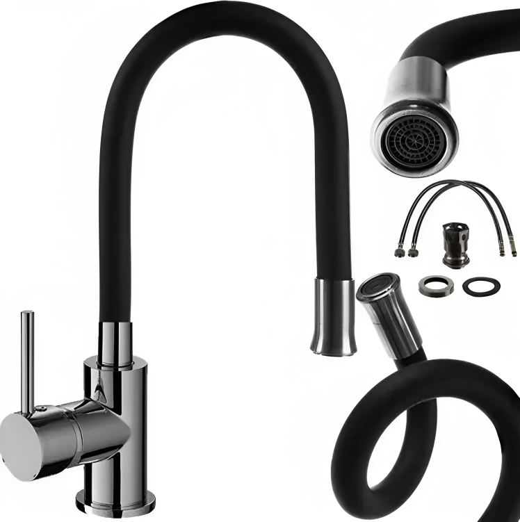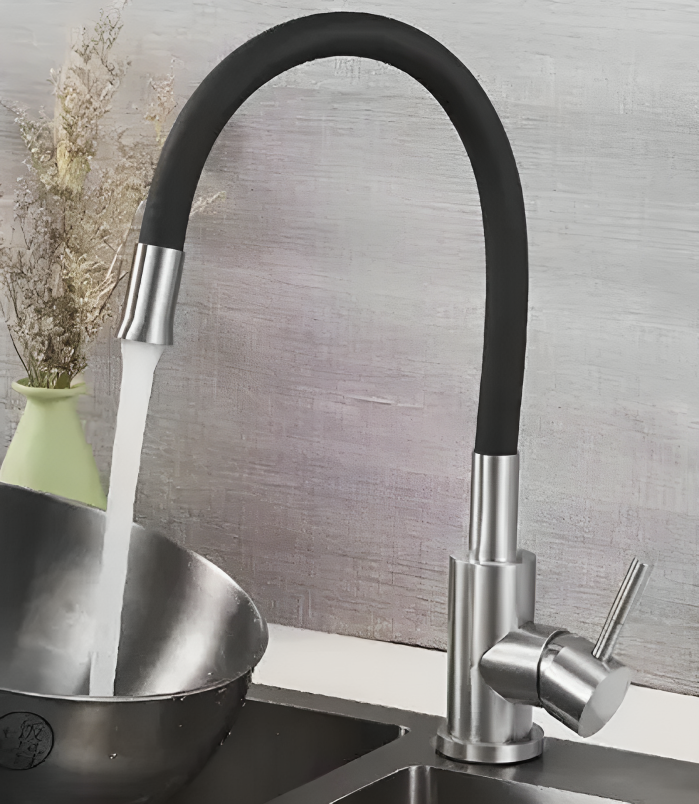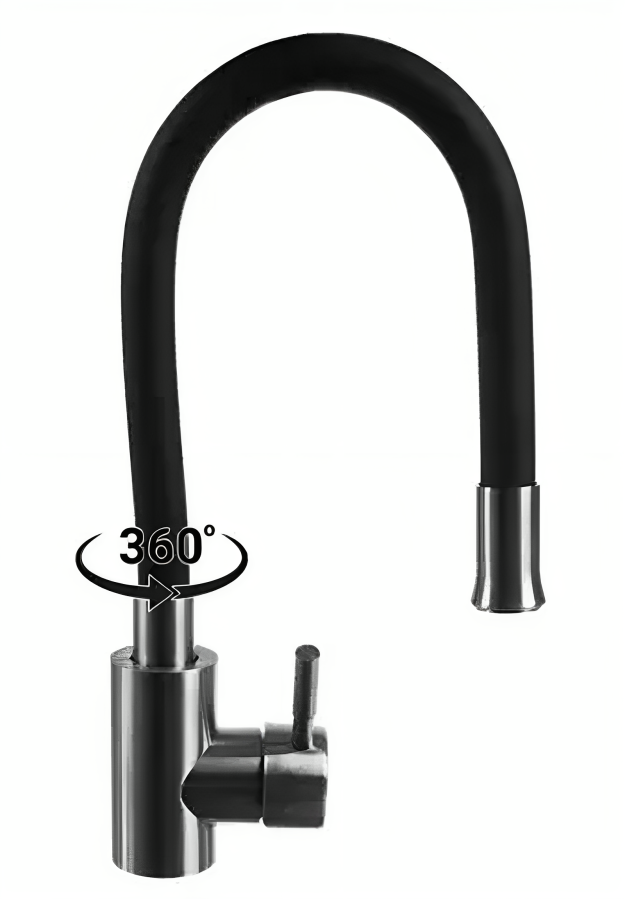 BATERIE ROTATIVA FLEXIBILA 360 DE GRADE – va permite sa setati liber duza in intervalul de 360 de grade, creand confort de utilizare. Il puteti ajusta cu mare precizie la inaltimea si intervalul curentului de apa. Permite turnarea fara probleme a apei, de exemplu intr-o oala mare. Duza flexibila este, de asemenea, o solutie excelenta atunci cand nu exista spatiu pentru o chiuveta cu mai multe compartimente. De asemenea, va fi grozav pentru chiuvete care sunt situate sub fereastra; nu va fi o problema la deschidere.