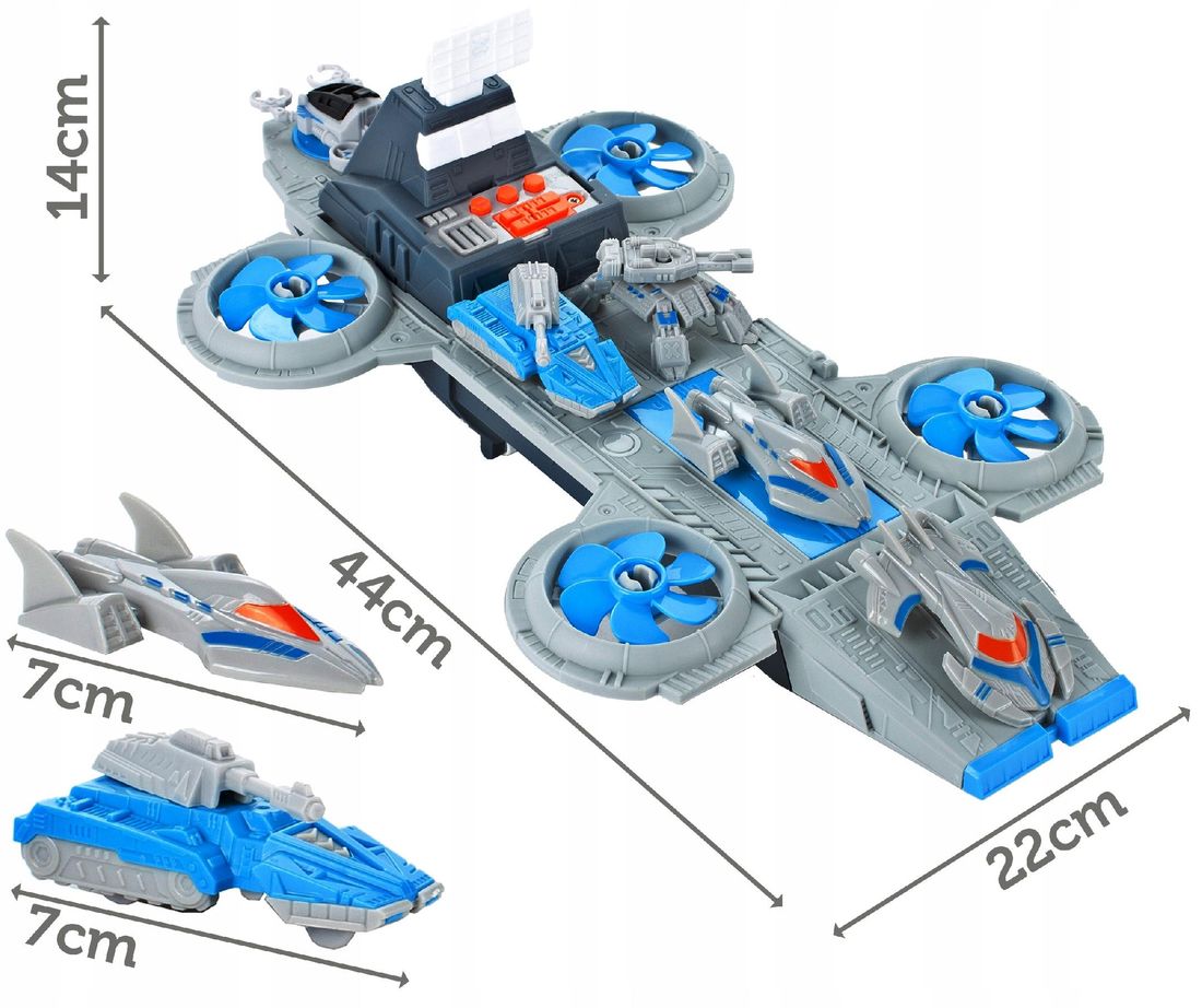 Baza spatiala idealSTORE, Dimensiuni 40 x 22 x 14 cm, Include 4 elice, rampa de gunoi, masini de explorare, docuri, 5 vehicule, loc de aterizare, Dezvolta imaginatia copilului