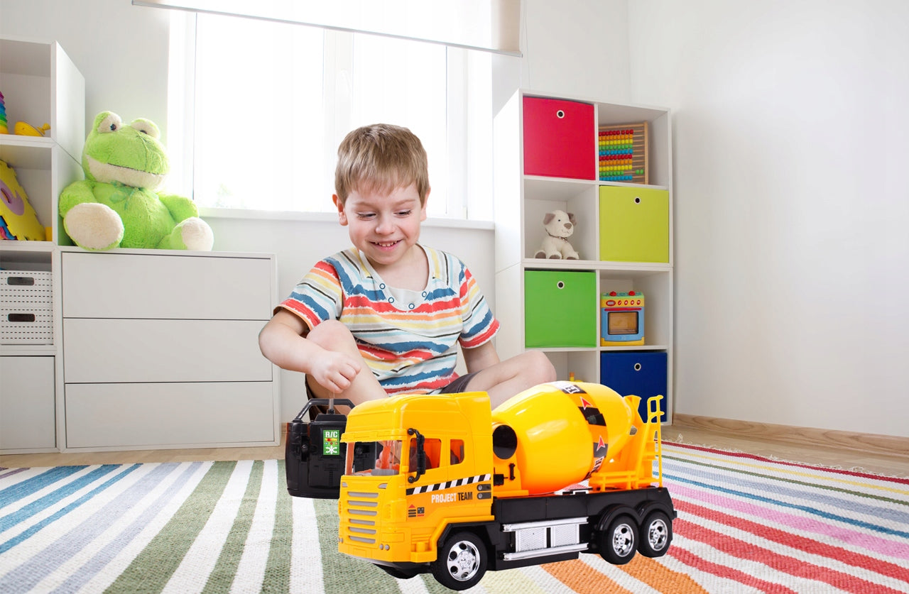 Betoniera cu telecomanda idealSTORE va incanta fiecare mic pasionat de utilaje de constructii.