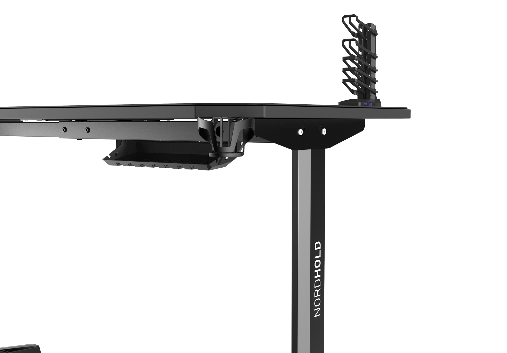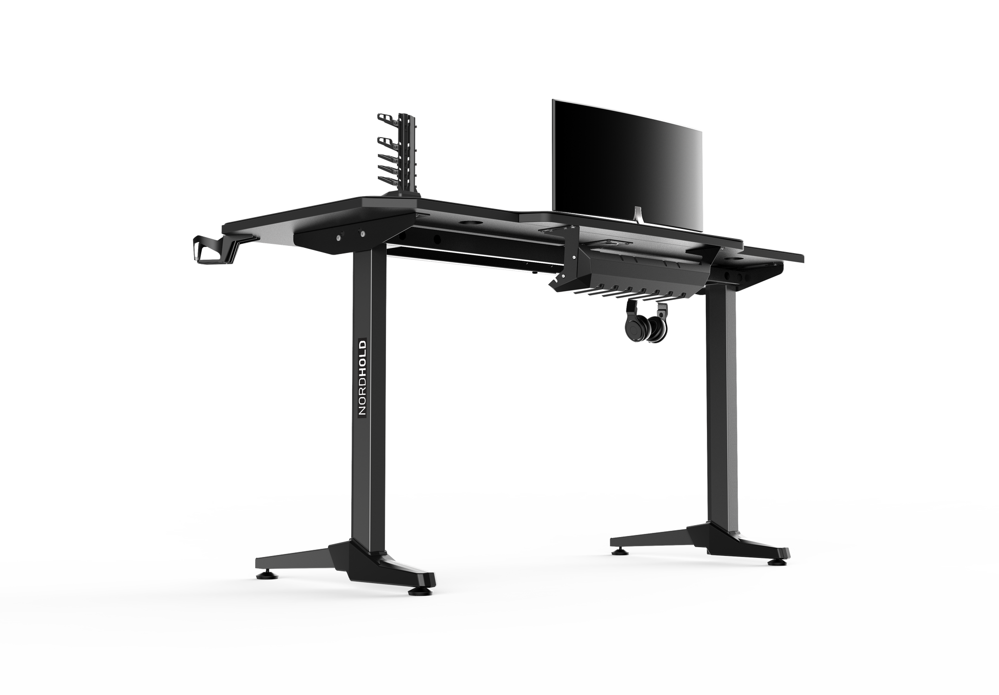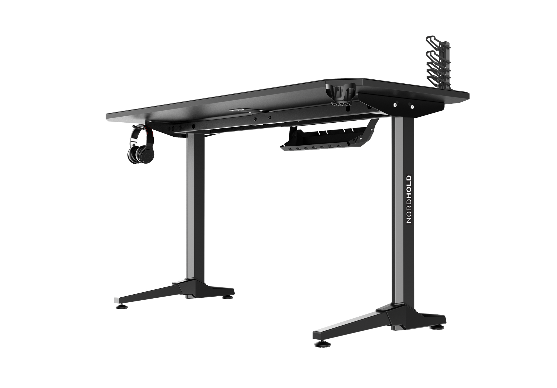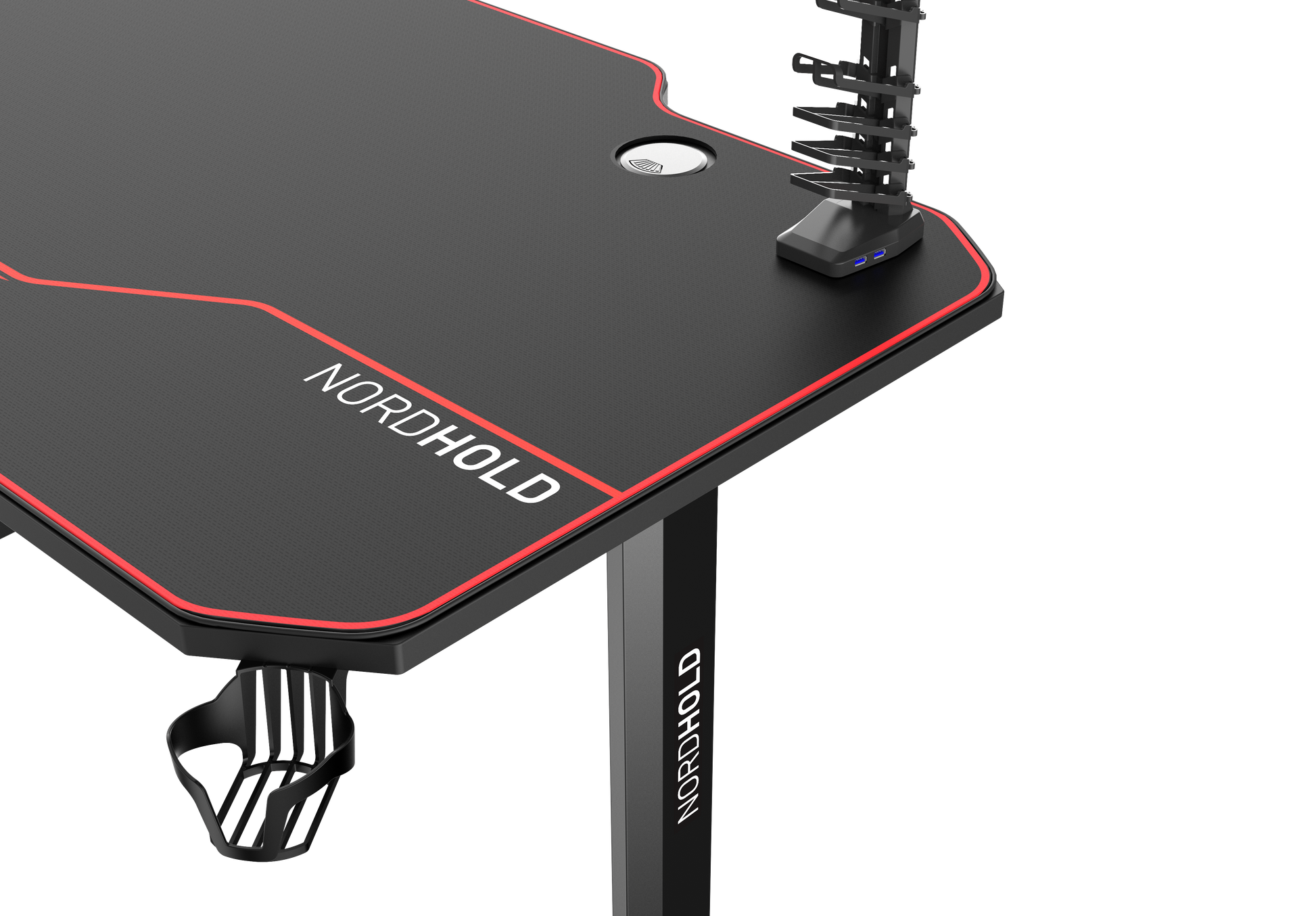Biroul de Gaming Shark GD HOLD este un birou elegant si durabil, cu toata suprafata tip mouse pad. Biroul este prevazut cu picioare stabile si prezinta numeroase accesorii utile pentru un pasionat de jocuri: suport pentru casti, suport pentru pahar, suport pentru gamepad.