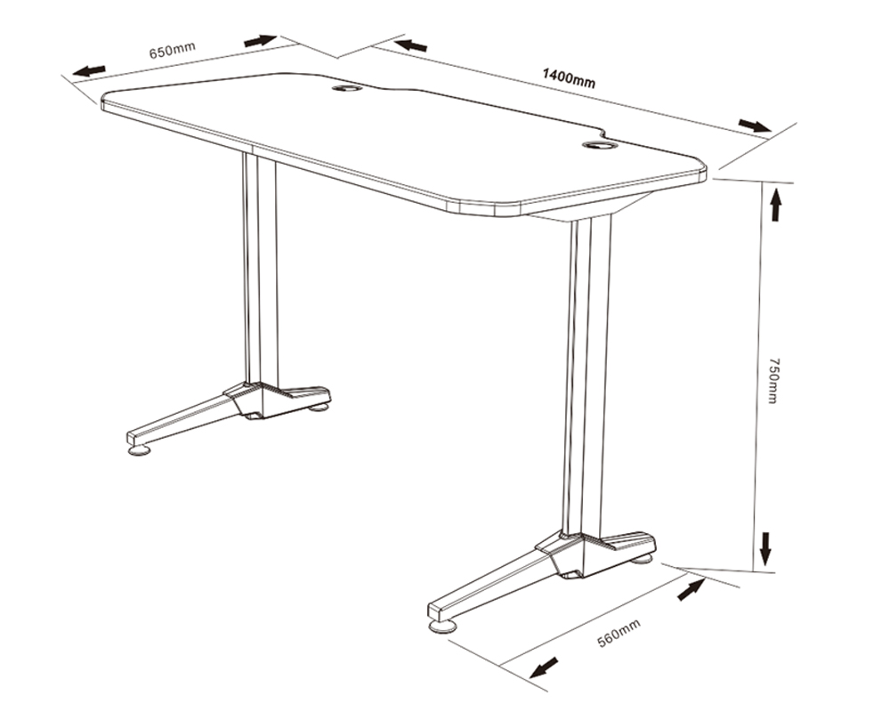 Pentru organizarea cablurilor, biroul are orificii speciale pentru cabluri si un suport pentru prelungitor situat in partea din spate. Mouse pad-ul de dimensiuni generoase (140 x 66 cm) este foarte apreciat de catre gameri. Biroul are dimensiunile L140 x l 66 x H 77 cm, este fabricat din materiale de calitate si suporta o greutate maxima de pana la 150 kg.