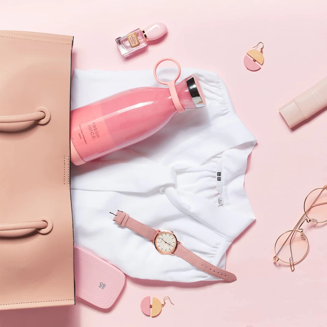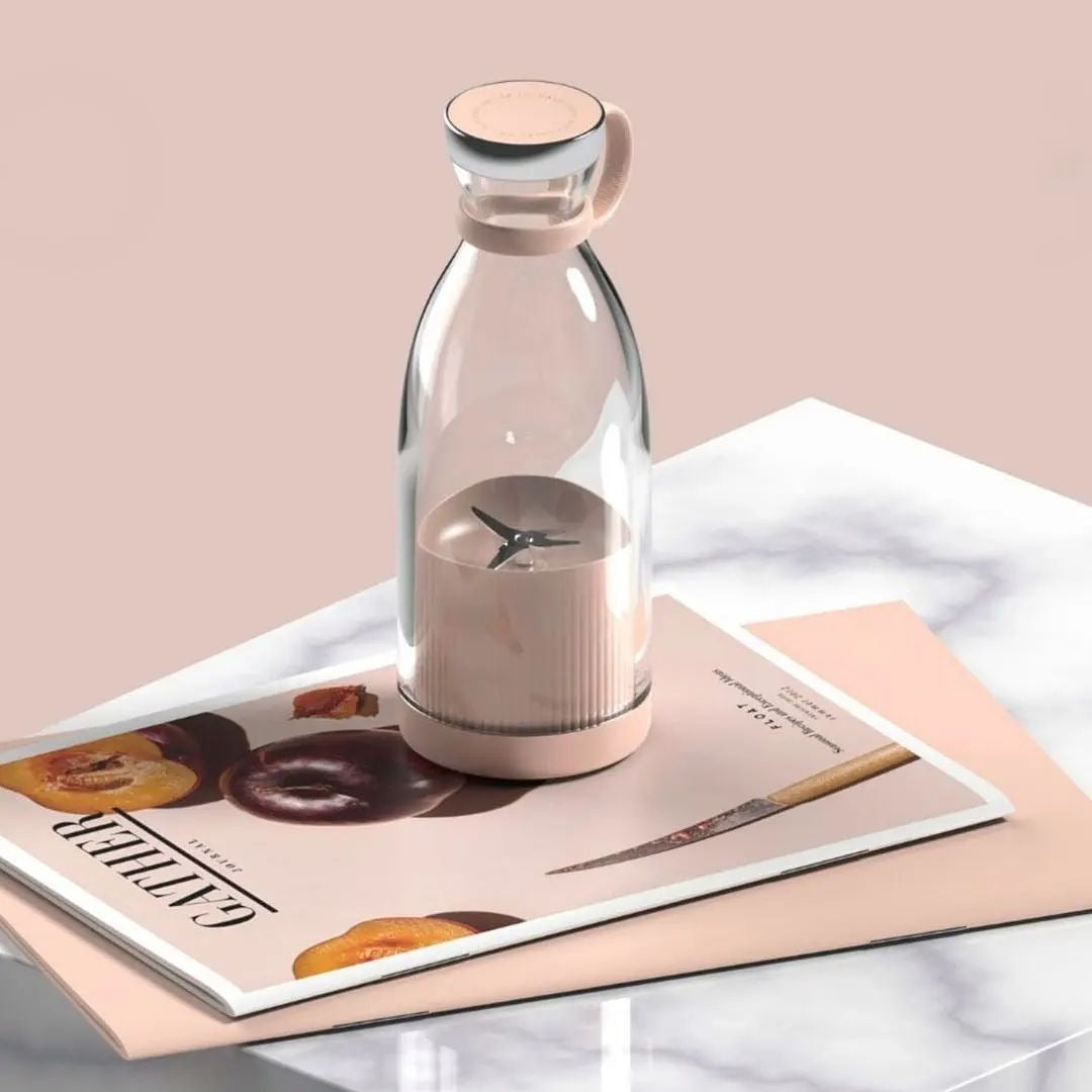 Mini Blender portabil cu acumulator, 50W, 1400 mAh, incarcare wireless, Waterproof, 350 ml, Roz