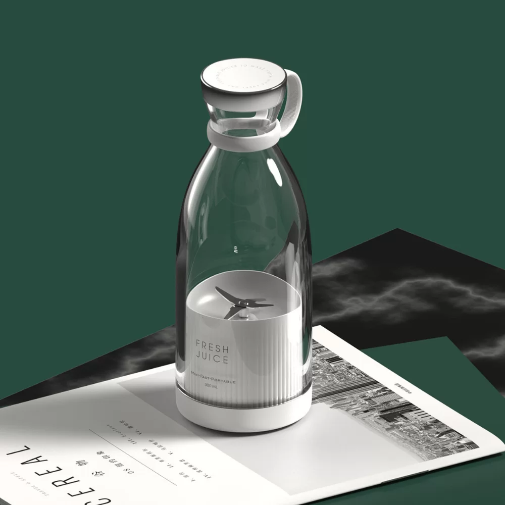 Blender Portabil pentru Bauturi, FreshJuice Smart, Incarcare Wireless, 4 Lame, Capacitate 350ml, Multifunctional, Alb