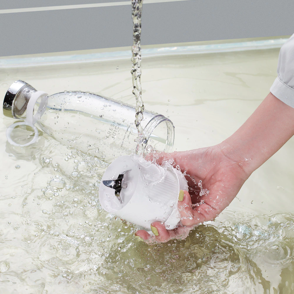 Curatare usoara si material durabil, rezistent la apa ( Fabricat din cel mai bun plastic fara BPA, , blenderul este construit sa reziste, fara a compromite aspectul impecabil. Dispozitivul este creat in asa fel incat curatarea sa poate avea loc in cel mai usor si rapid mod posibil, intrucat ambele parti ale blenderului sunt detasabile. Il puteti spala si in masina pentru vase, fiind singurul blender portabil de pe piata care este complet rezistent la apa. )