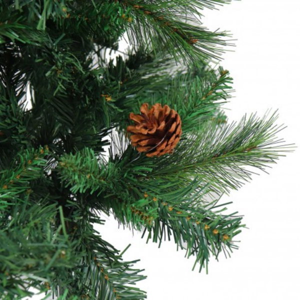 Bradul artificial de Craciun este confectionat din PVC, areculoarea verde si conuri de pin. Acesta are inaltimea de 150 cm, 418 varfuri