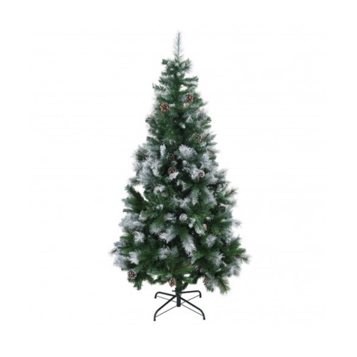 Brad artificial de Craciun IdealSTORE cu ramuri inghetate - conuri, 690 varfuri, verde + alb, 180 cm