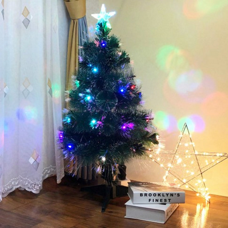 Brad Artificial Fibra Optica 90 cm idealStore, cu suport, 41 leduri, 72 de varfuri, cablu alimentare 2m, efect Flash, lumini multicolore