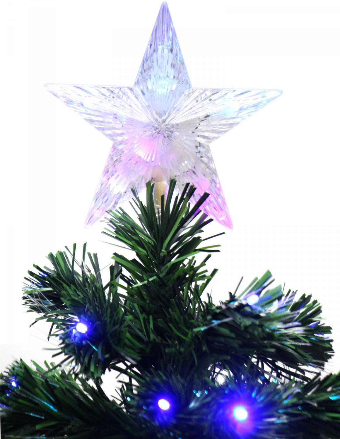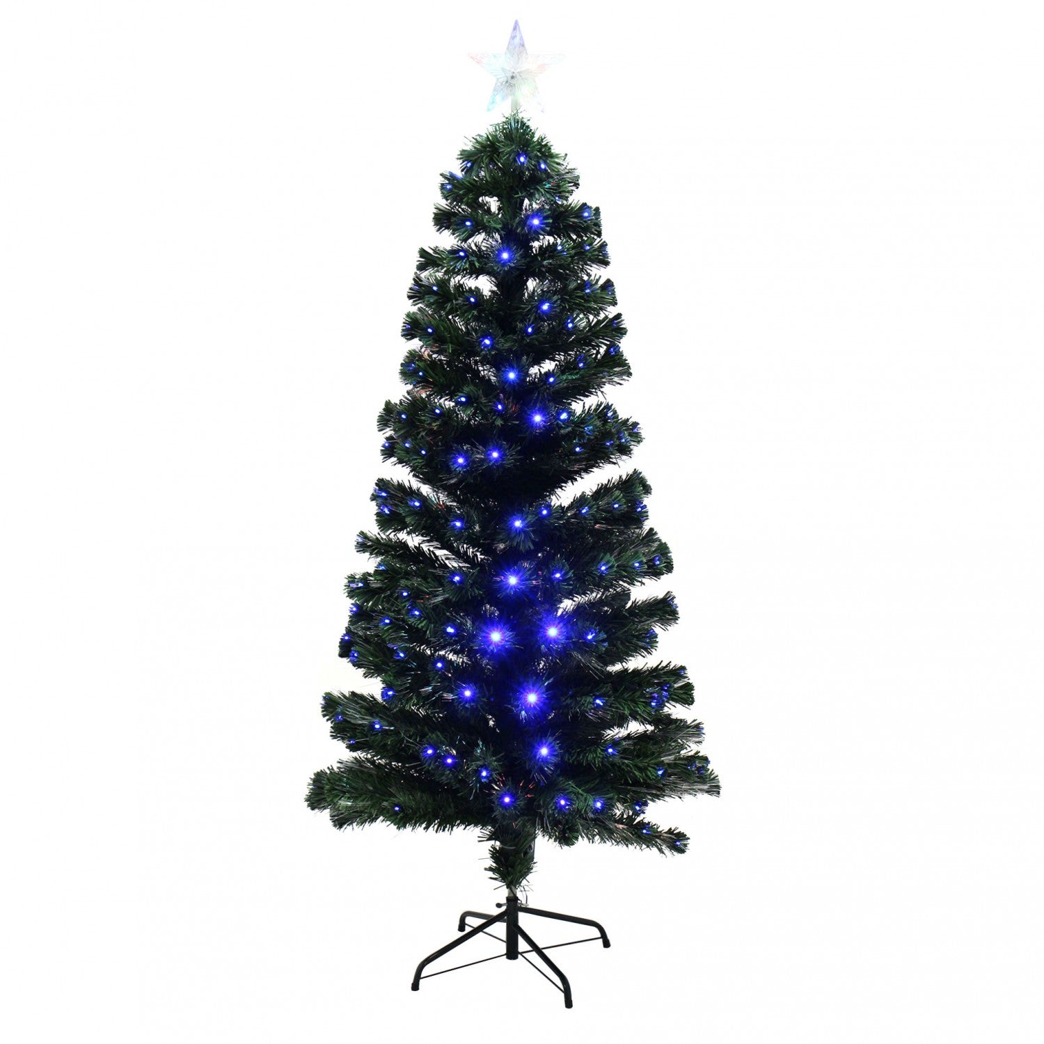Brad de Craciun Verde Artificial cu fibra optica si stativ, Inaltime 180cm, Leduri Culoare Albastra, 230 leduri albastre, usor de instalat si folosit pentru o ambienta de neuitat, Stativ incorporat, Steluta pentru varf Cadou
