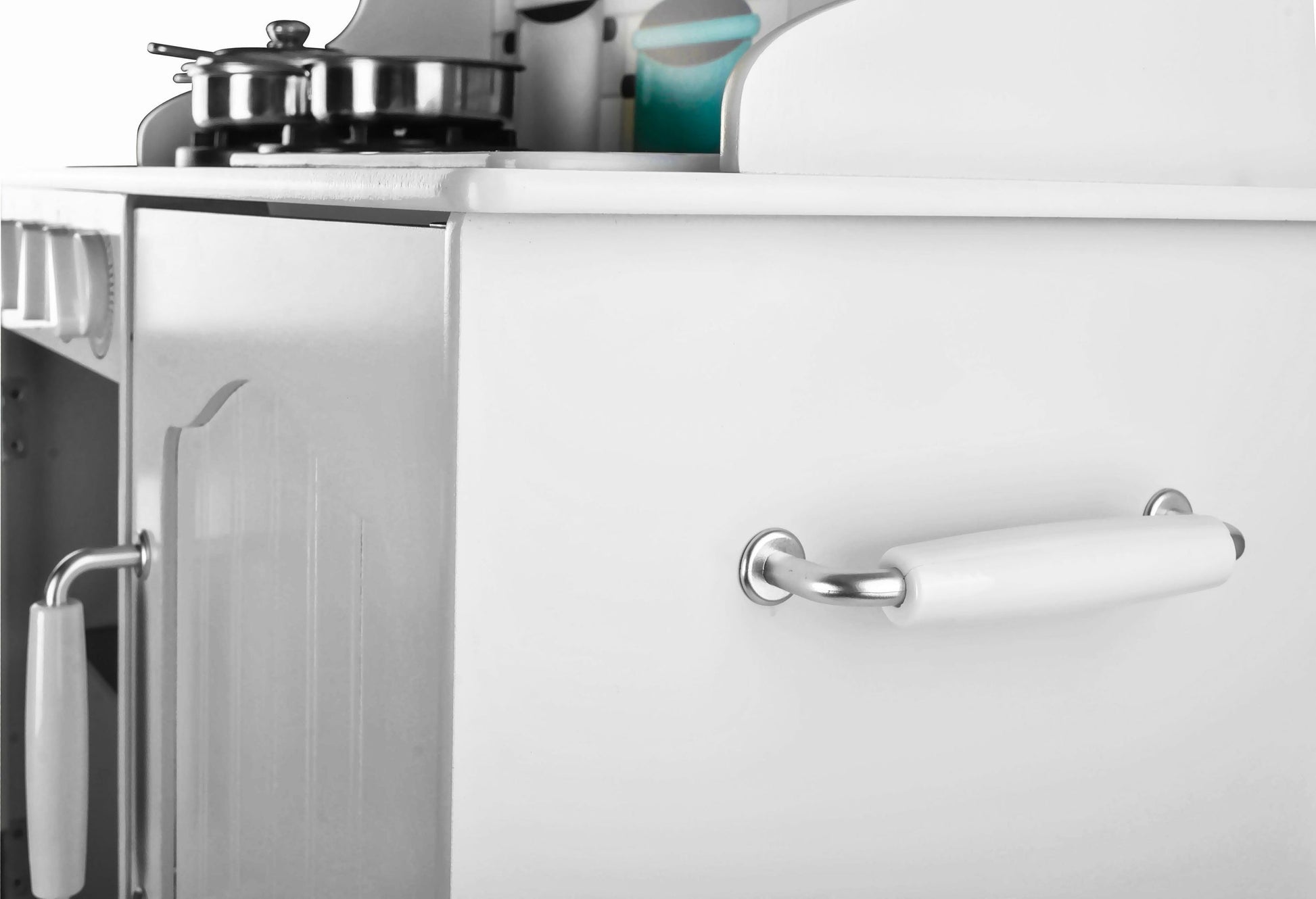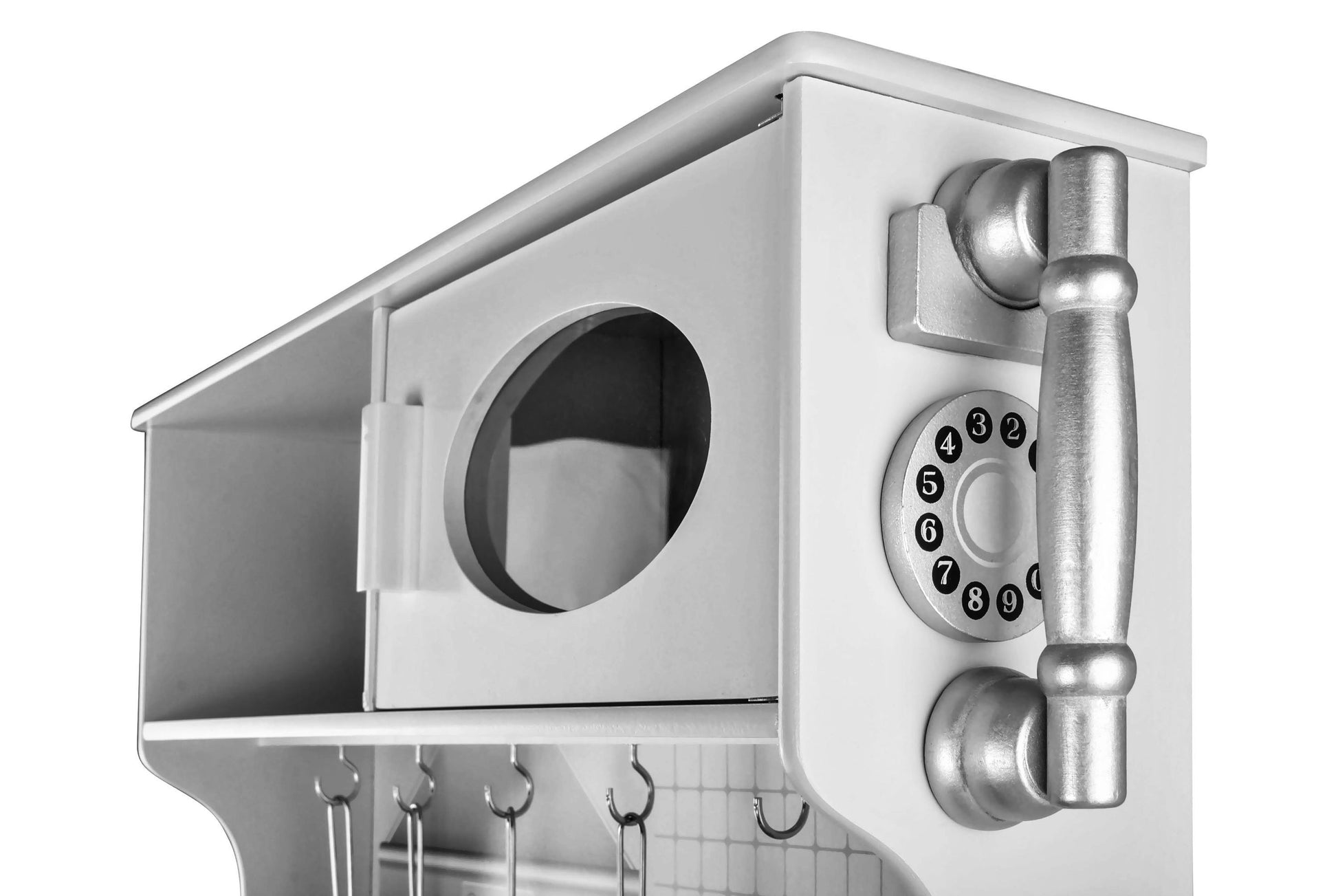 Bucatarie Alba din Lemn Pentru Copii Master Chef idealStore, Sunet si Iluminare Led, Costum de Bucatar, Accesorii pentru Gatit Incluse, Lemn de Inalta Calitate, Finisaj Estetic