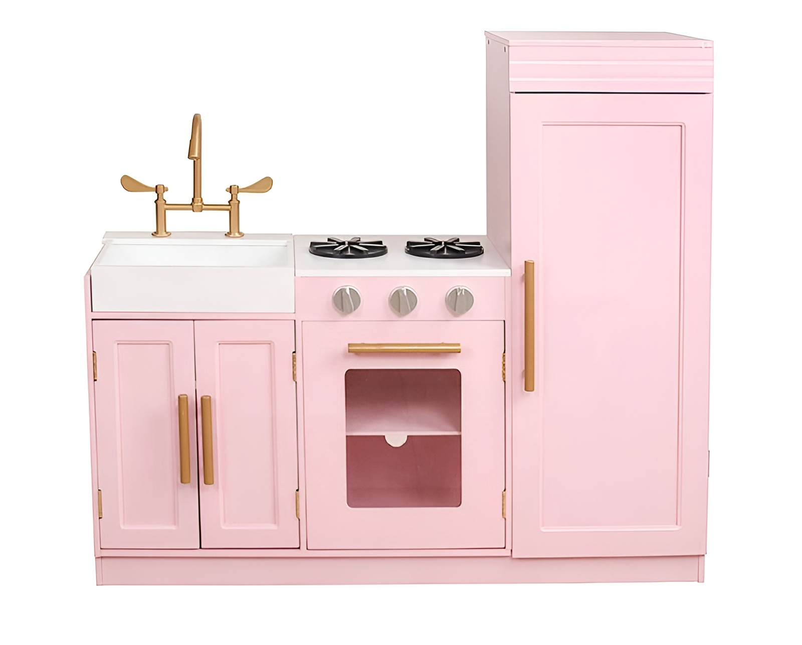 Bucatarie din lemn idealSTORE,Dimensiuni 84 x 30 x 91 cm,Material MDF,Cu lumini LED,Chiuveta detasabila,Aragaz si Cuptor,Dezvolta imaginatia,Culoare Roz