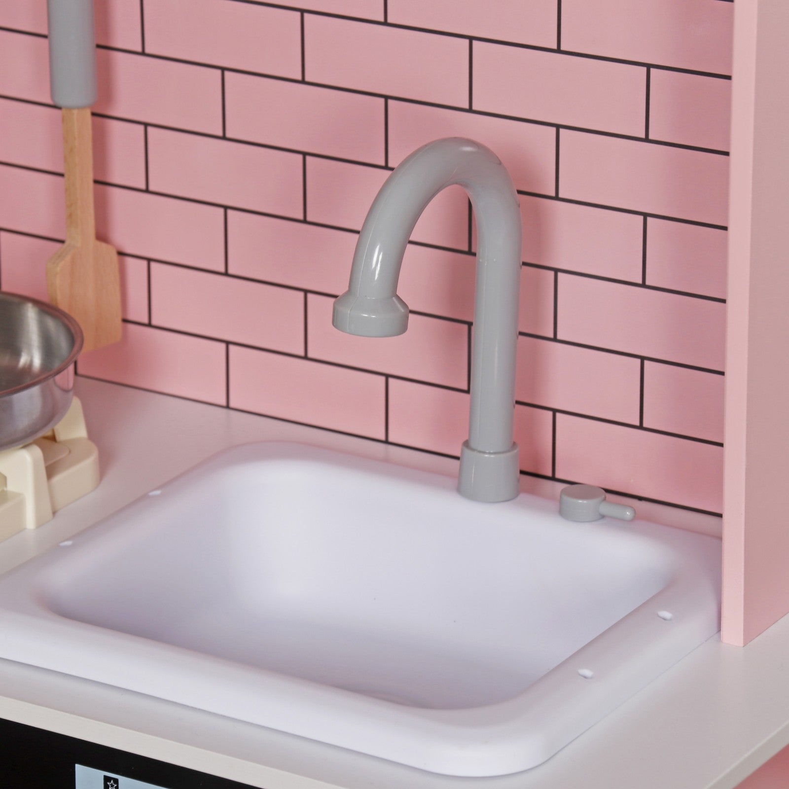 Gatiti un timp bun in aceasta bucatarie de joaca, efectuand apeluri distractive pe telefonul detasabil.