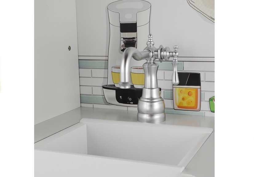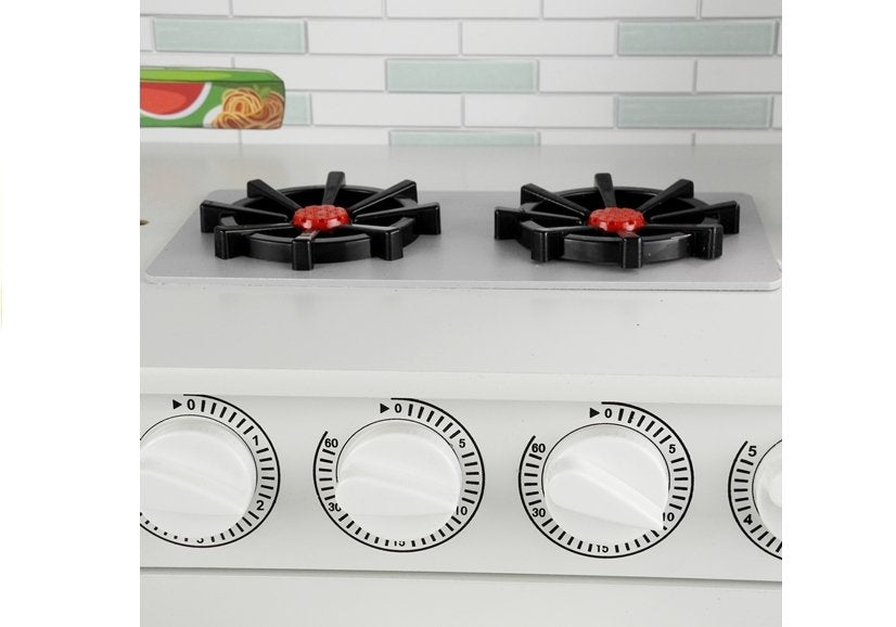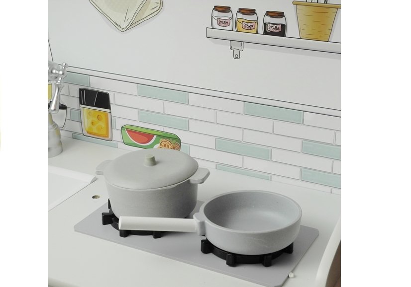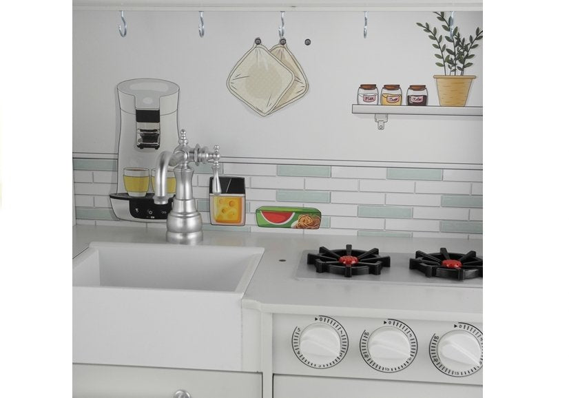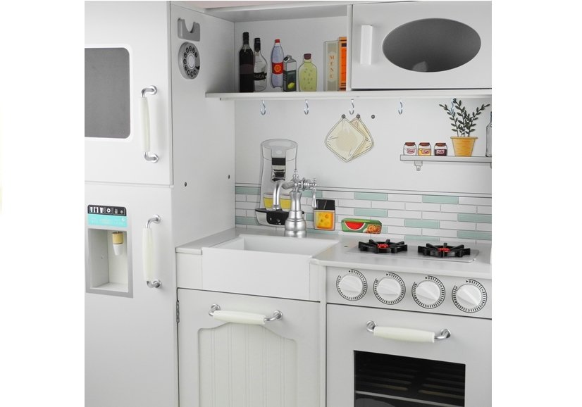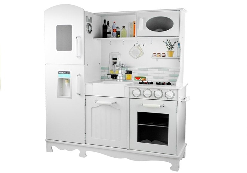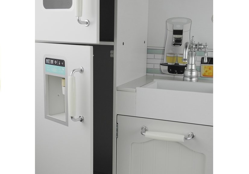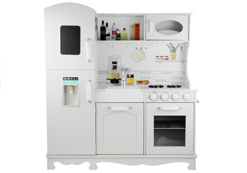 Bucatarie din lemn Nela cu frigider si cuptor, alb