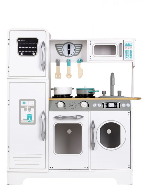 | Bucataria fantastica din lemn este un hit, ideal pentru micii bucatari. Fiecare copil adora sa observe, sa imite si sa-i ajute pe adulti cu activitati de zi cu zi. Datorita bucatariei noastre, copilul dvs. va avea ocazia sa devina bucatar si sa pregateasca mancaruri delicioase pentru intreaga familie. Jucaria noastra va invata principiile de gatit, va dezvolta creativitatea si abilitatile manuale. Datorita functionalitatii sale, bucataria va aduce ore lungi de distractie si va deveni rapid o jucarie preferata. Butoanele, ceasul, dulapurile, frigiderul, cuptorul cu microunde - toate ca intr-o bucatarie adevarata. Totul este pastrat in culori moderne, scandinave, facute cu atentie la fiecare detaliu. | ![]() |