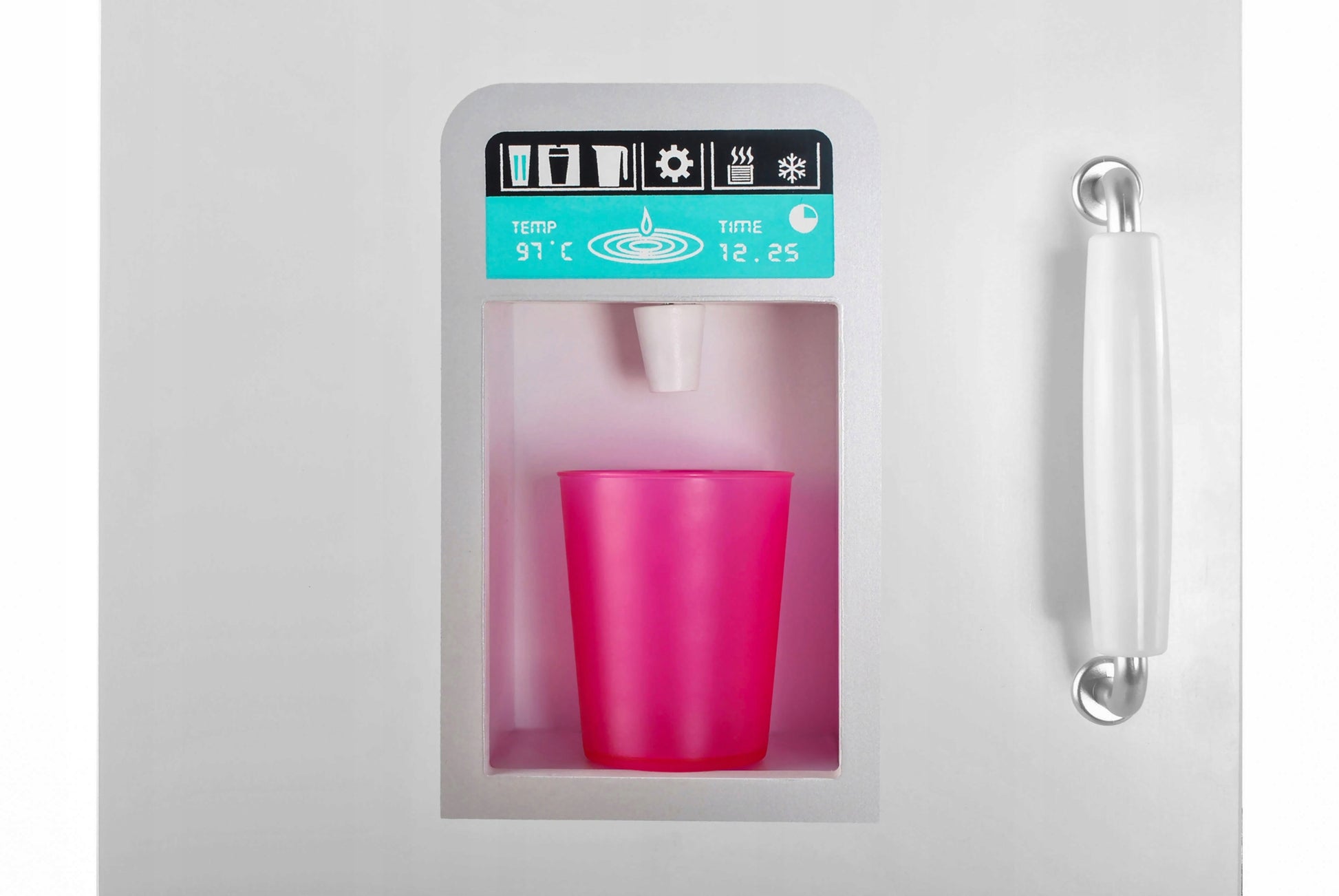 Frigiderul are imitatia unui distribuitor de apa.