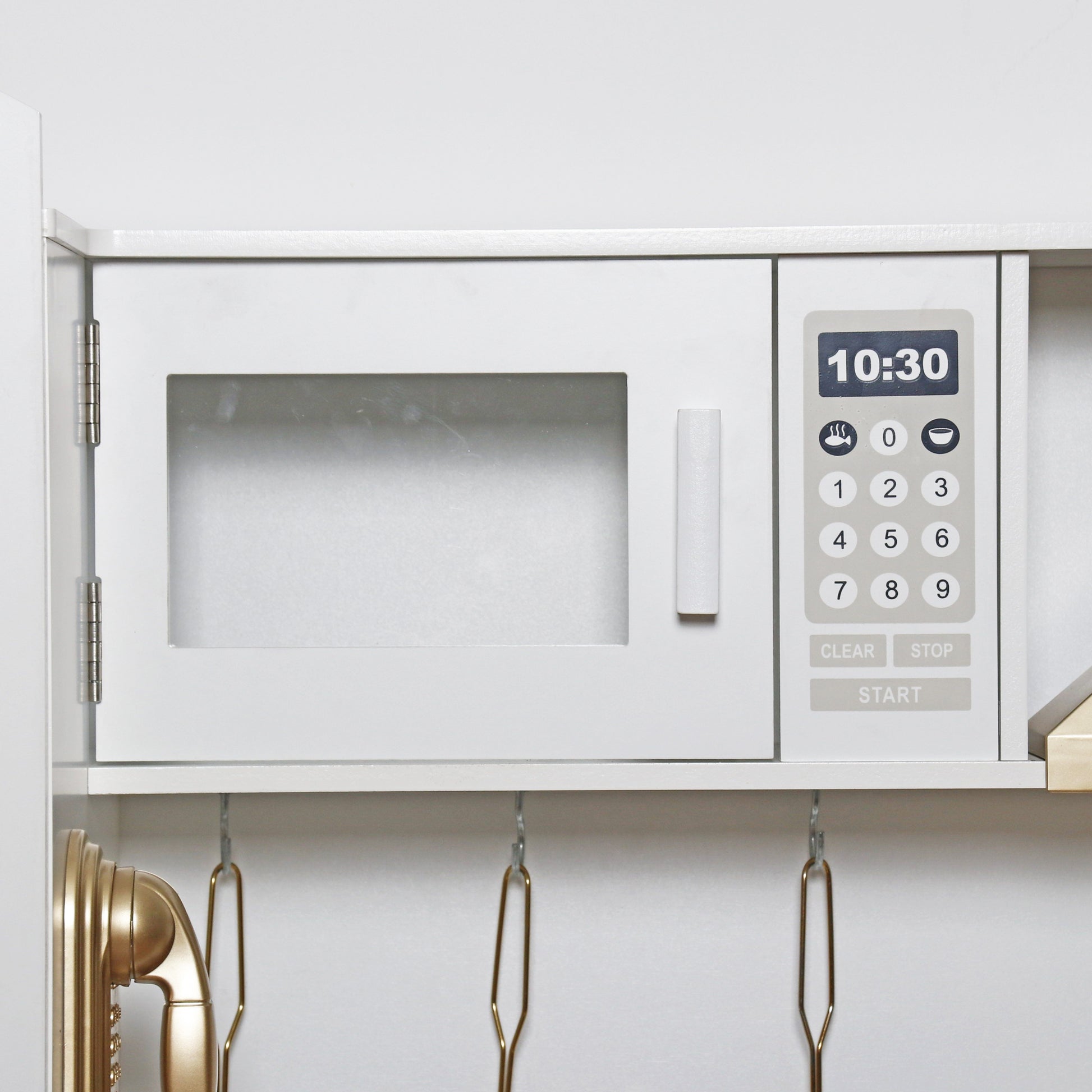 Articole realiste precum frigider, cuptor cu microunde, cuptor, telefon, vase de gatit, telefon, plita, etc.