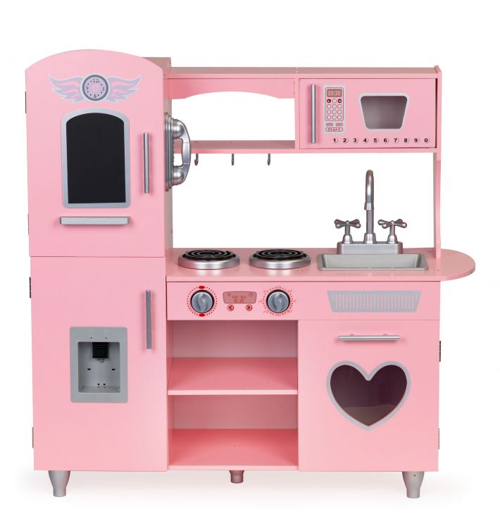 Bucatarie mare pentru, Ecotoys, copii din lemn, cu efecte sonore, Roz, 92 cm