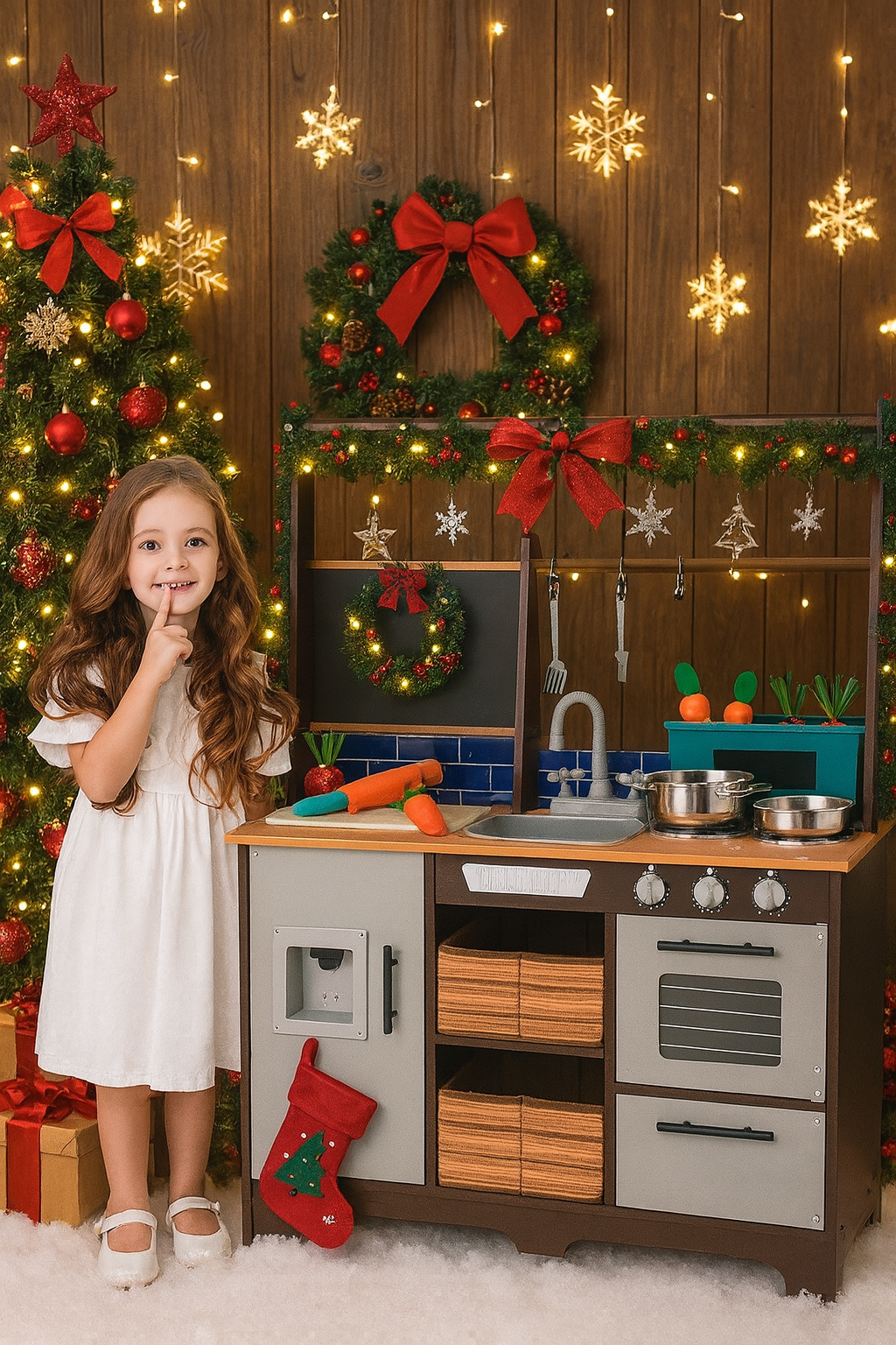 Bucatarie Multifunctionala din lemn The Taste Of The Chef idealSTOR pentru copii, Dimensiuni 74 x 30 x 95 cm Accesorizata cu legume Recipiente, Oale, Dozator de Apa, Dulapuri care se pot deschide, Fara margini ascutite