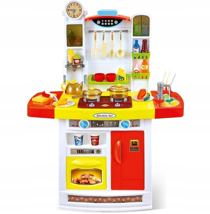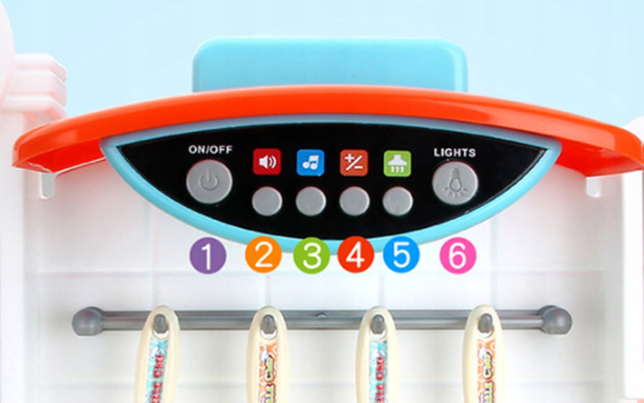 Bucataria electronica reprezinta o modalitate excelenta de dezvoltare a abilitatilor, cunostiintelor si aptitudinilor de comunicare ale copilului. Aceasta bucatarie are o inaltime de 95 cm astfel atat fetitele cat si baieteii se pot juca in picioare, jocuri de rol pe care le pot desfasura cu mare placere, fara a se plictisi.