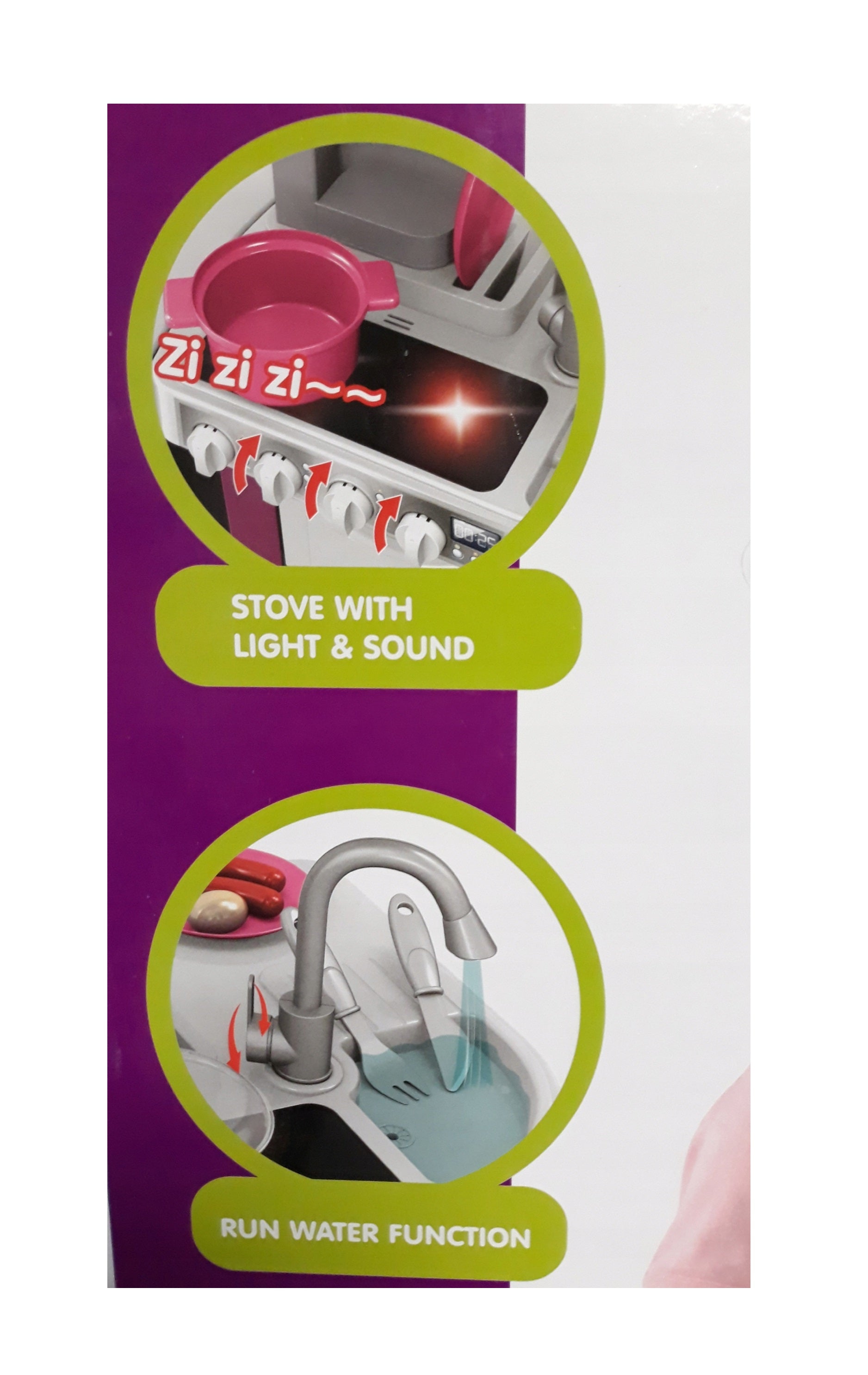 Bucatarie multifunctionala pentru copii idealSTORE PURPLE Grand Kitchen, Dimensiuni 71 x 62 x 35 cm, Echipata si utilata completi, Accesorii incluse, Sunete si luminite
