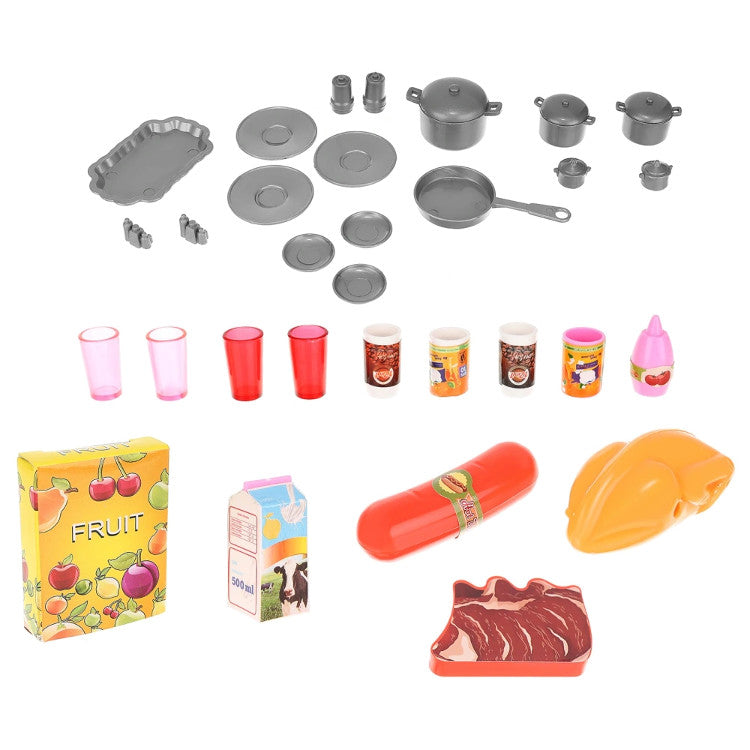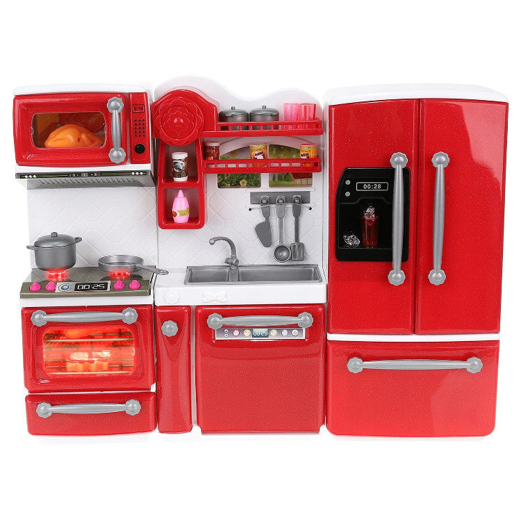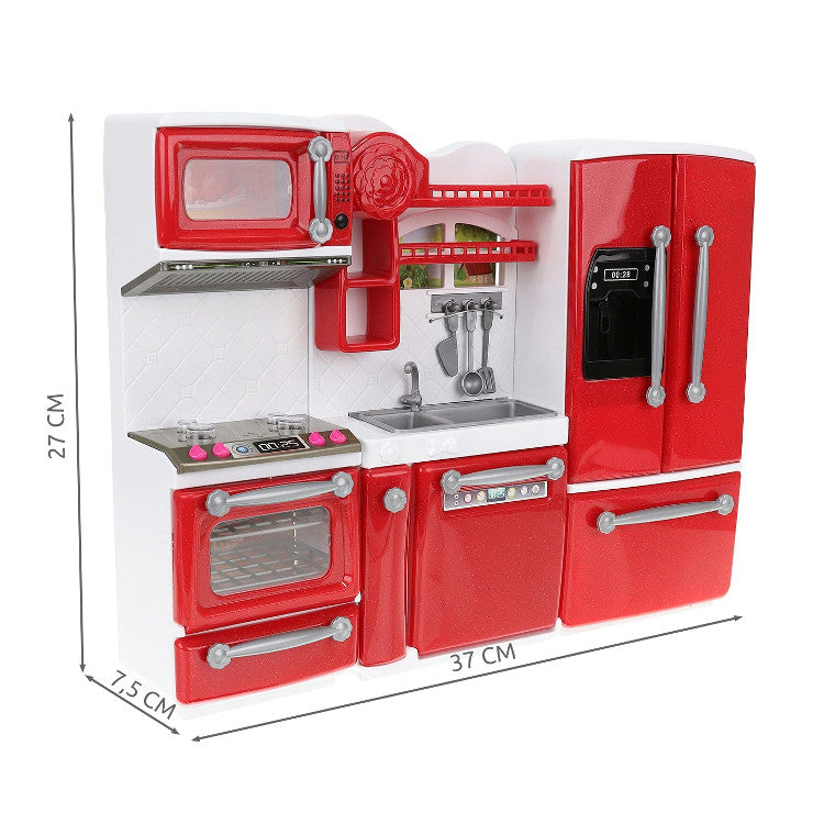 Bucatarie pentru papusi, 3 corpuri independente + 47 accesorii, efecte sonore si luminoase, 37x7,5x27 cm, culoare rosu