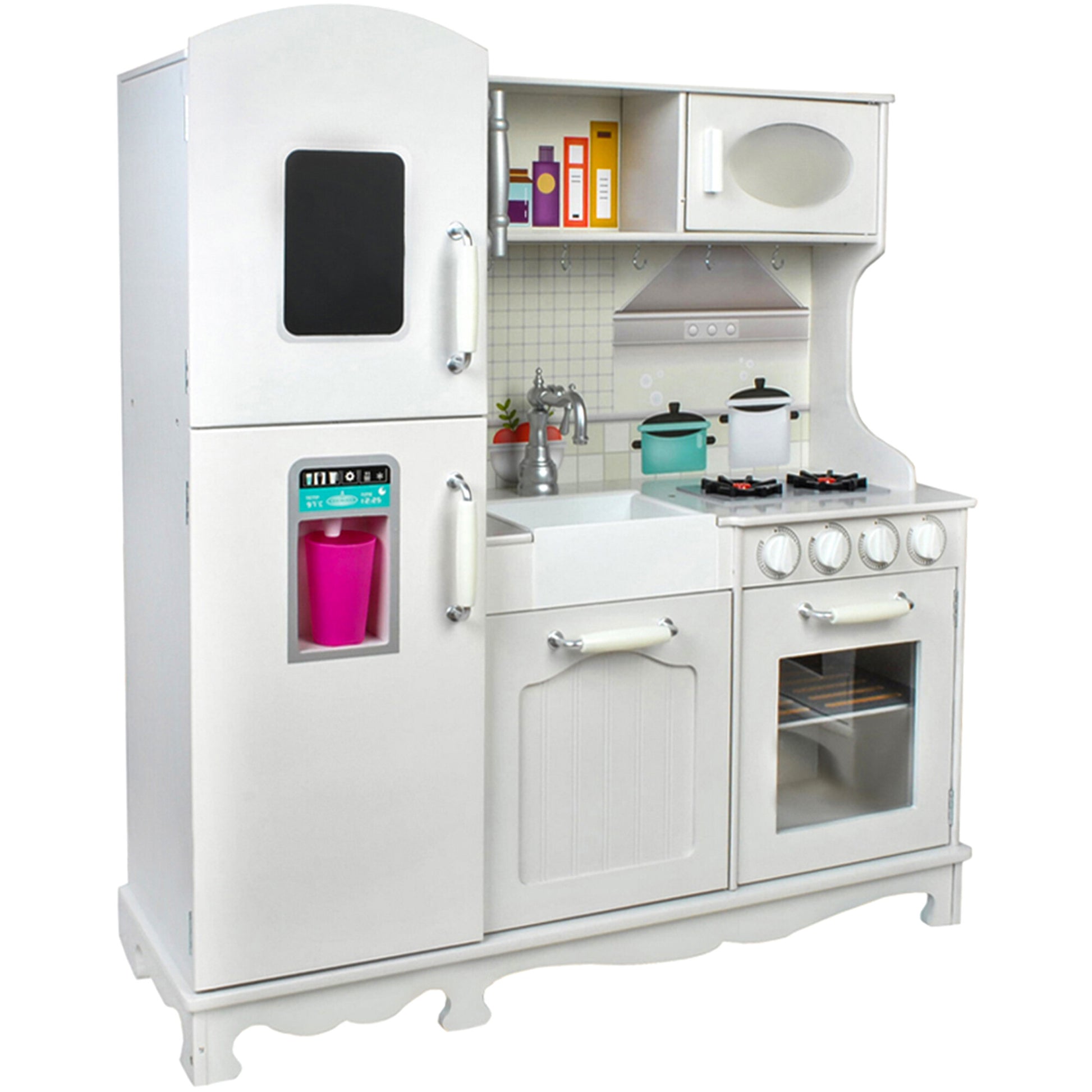 Bucatarie traditionala, din lemn, pentru copii, Kruzzel, aragaz, cuptor cu microunde, chiuveta, 92.5x51x98cm, Alb