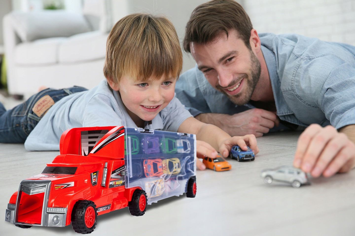 O jucarie pentru copii entuziasti care au multe surprize! Suntem siguri ca un camion cu deflectoare va fi un vis devenit realitate pentru toti fanii si colectionarii acestor masini mici. Foarte important, pe partea cealalta a vehiculului exista 6 posturi vacante in care copilul isi poate plasa colectiile actuale.