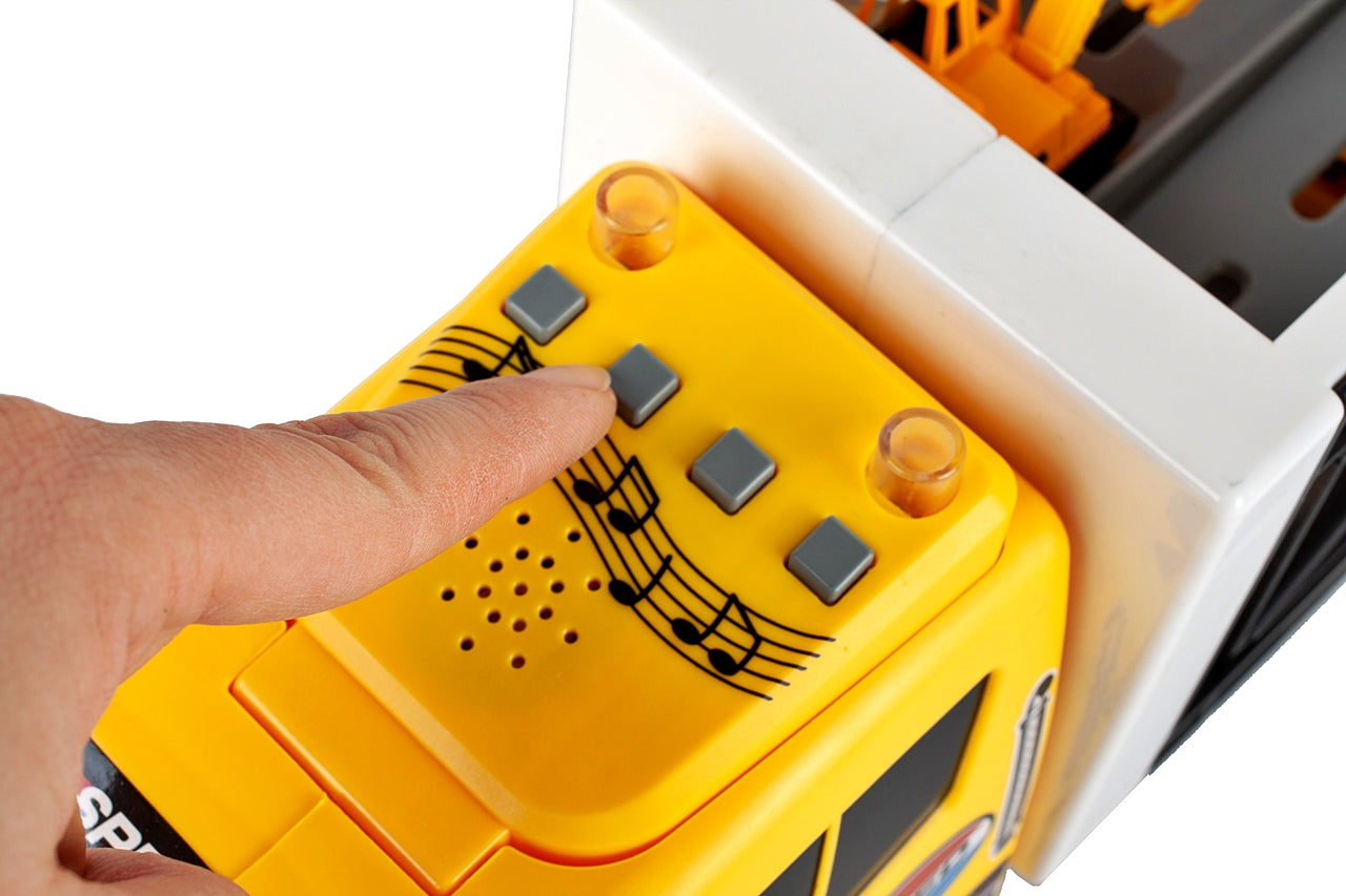 Camionul emite sunete precum, pornirea masinii, mers inapoi, claxonul, zgomotul motorului in functiune.