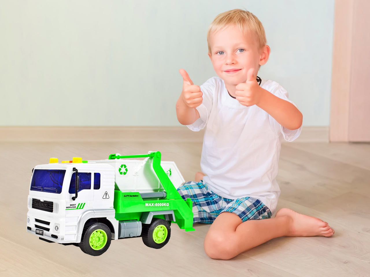 Camionul de gunoi auto de jucarie senzational va atrage cu siguranta fiecare baiat si va oferi multe ore de distractie creativa si vesela.Perfect pentru un grup de prieteni .Sarcina unui astfel de camion de gunoi este de a incarca gunoiul,care trebuie sa fie zdrobi si in cele din urma dus la un depozit de deseuri.Fericiti-va copilul si oferiti-i jucaria noastra, astefel incat sa se simta adult.