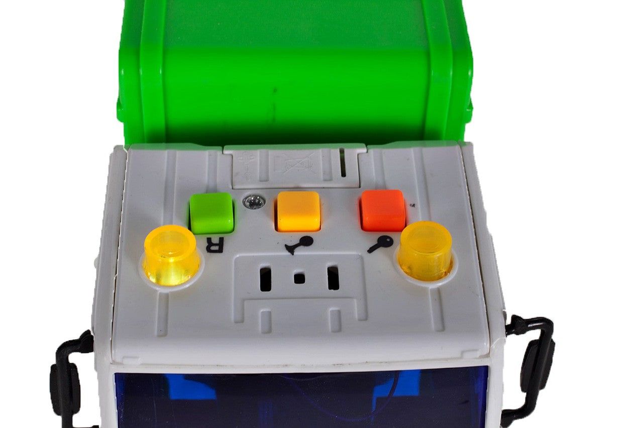 Camion Interactiv pentru Ecologizare idealSTORE GREEN CLEAN TRUCK, Scara 1:20, Dimensiuni 18.0 x 10.0 x 10.0 cm, Echipat cu container functional ce ofera distractie creativa si vesela, Functionalitate pe baterii