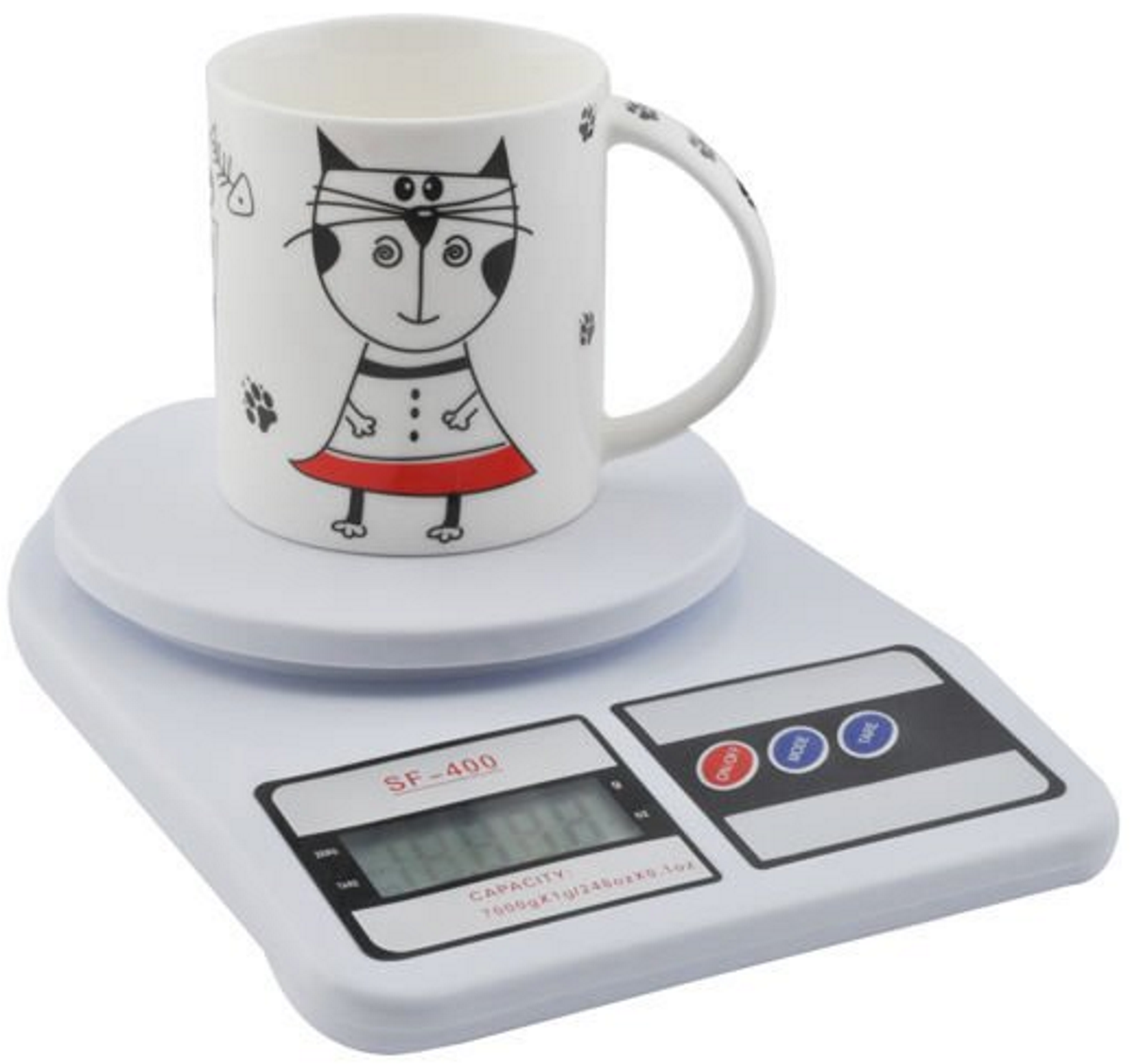 Cantar electronic de bucatarie SF400 idealSTORE, Dimensiuni 14 x 24 x 4 x 14 cm, Functie TAR, Matertial plastic durabil, Unitate de masura g/oz, Sarcina maxima 7 kg, Greutate 380 g, Culoare Alb